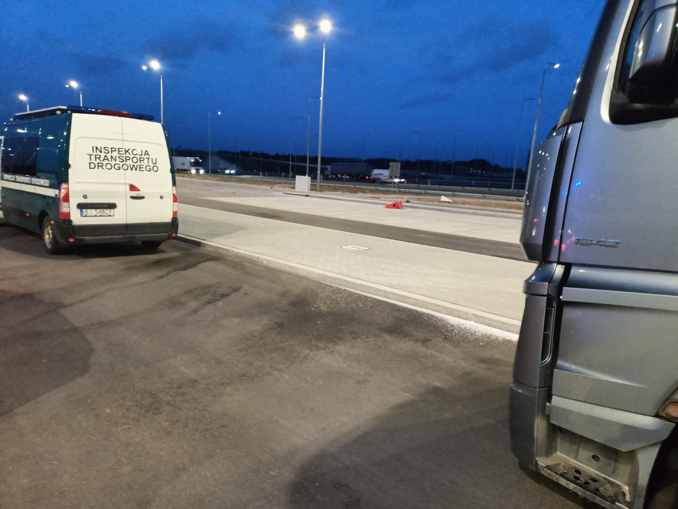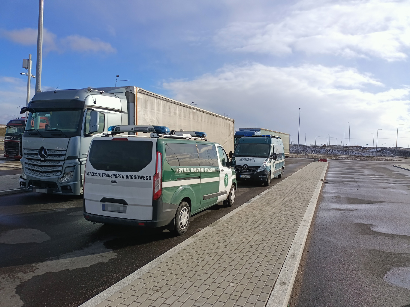 Inspektorzy z Wojewódzkiego Inspektoratu Transportu Drogowego w Białymstoku w sobotę 4 marca 2023 r. na drodze S61 na terenie byłego przejścia granicznego w Budzisku wspólnie z pracownikami Głównego Inspektoratu Transportu Drogowego dokonali sprawdzenia samochodów przewożących opony z Litwy do Kirgistanu.