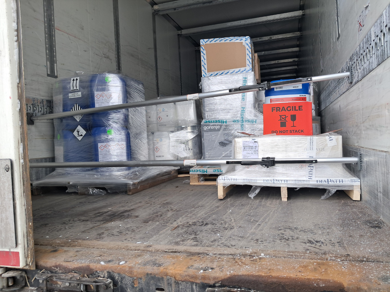 We wtorek (17.02) na punkcie kontroli przy drodze krajowej S61 MOP Zabiele Wschód, podlascy inspektorzy z oddziału w Łomży przeprowadzili kontrolę drogową ciągnika siodłowego z naczepą. Realizowany transport drogowy artykułów wielobranżowych odbywał się z Polski do Litwy. Rewizja skrzyni ładunkowej ujawniła m.in. materiały niebezpieczne w ilości około 4000kg wymagającej realizacji przewozu zgodnie z przepisami Umowy ADR.