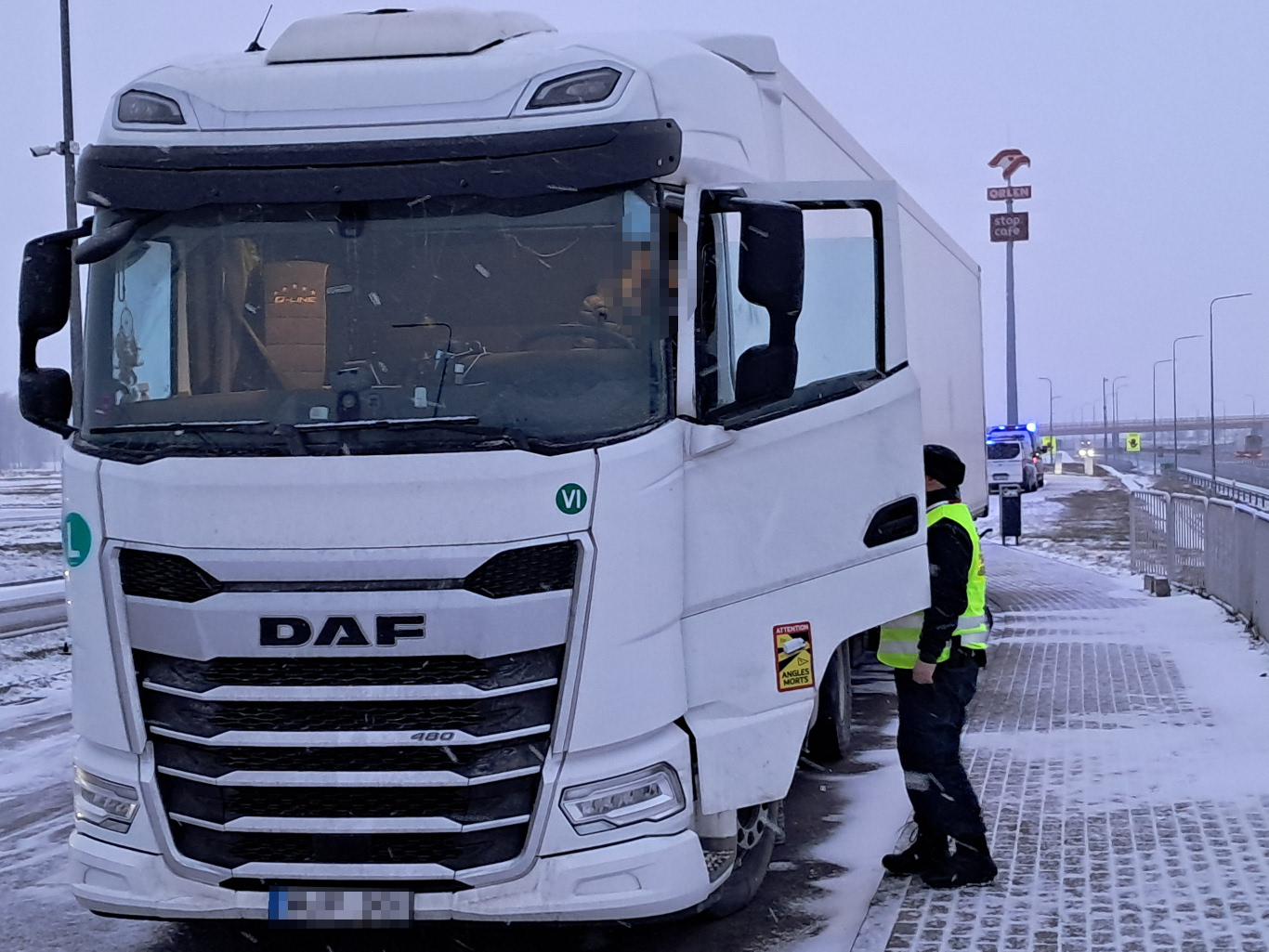 Przewoźnik skierował niezwłocznie na miejsce kontroli innego kierowcę posiadającego wymagane zaświadczenie ADR, który dostarczył brakujące wyposażenie ADR. Po oznaczeniu zestawu tablicami barwy pomarańczowej przejazd mógł być kontynuowany.