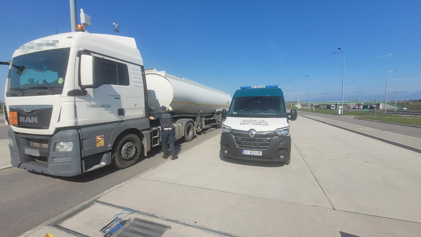 Kolejne zatrzymanie także dotyczyło przewozu oleju napędowego przez przewoźnika ukraińskiego na trasie Litwa – Ukraina, gdzie inspektorzy stwierdzili nieprawidłowość w postaci braku wymaganego przepisami umowy ADR oznakowania właściciela/użytkownika na pojeździe. Takie oznakowanie ma znaczenie podczas ewentualnych działań ratowniczych, które przy ładunkach niebezpiecznych mogą być prowadzone tylko po pełnym rozpoznaniu przypadku ze strony Straży Pożarnej do zastosowania odpowiednich środków. Wszczęto kolejne postępowanie administracyjne zagrożone karą pieniężną 2000 złotych.