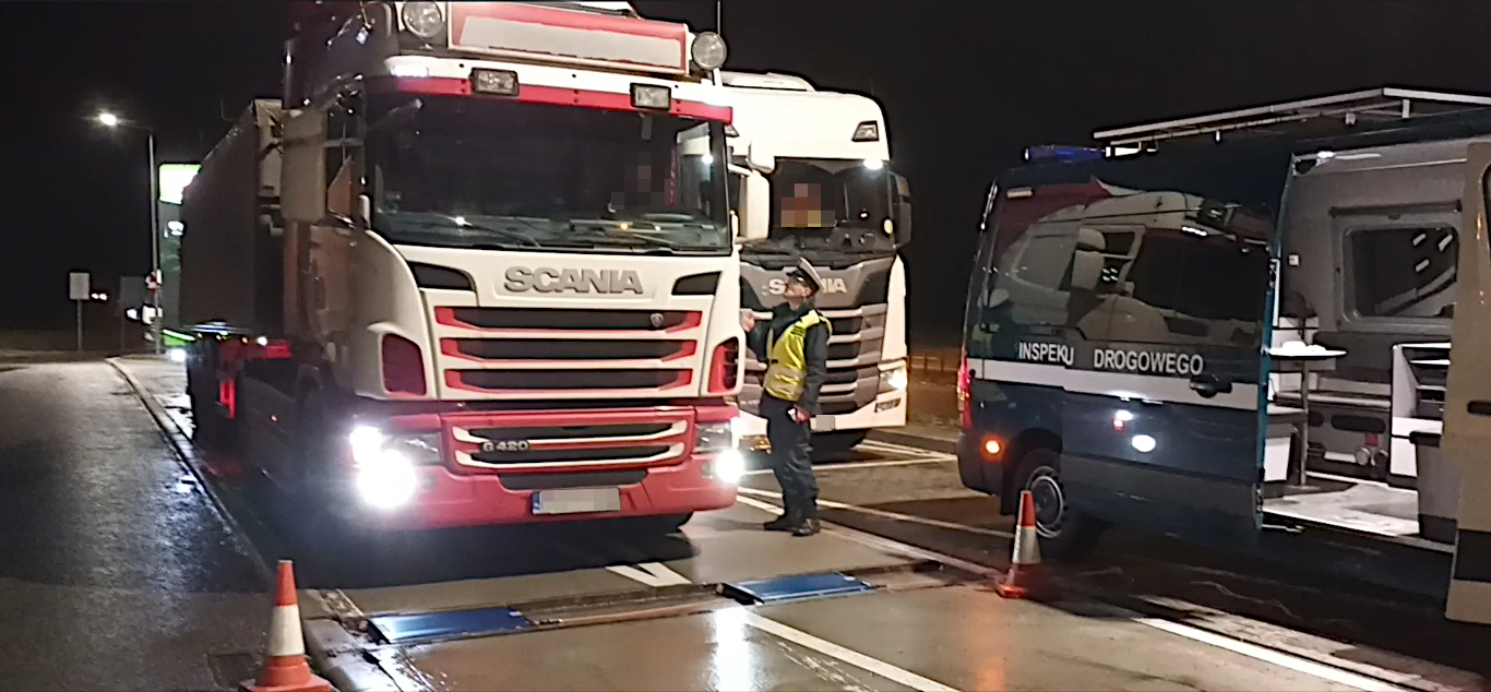 W nocy z 22 na 23 lutego inspektorzy suwalskiego oddziału WITD w Białymstoku ponowili nocne działania ukierunkowane na kontrole pojazdów przewożących ładunki sypkie. W ich wyniku ujawniono ciężarówkę przewożącą żwir o masie przekraczającej wartości dopuszczalne oraz znacznie przekroczone naciski grup trzech osi. Doprowadzono do przeładowania nadwyżki.