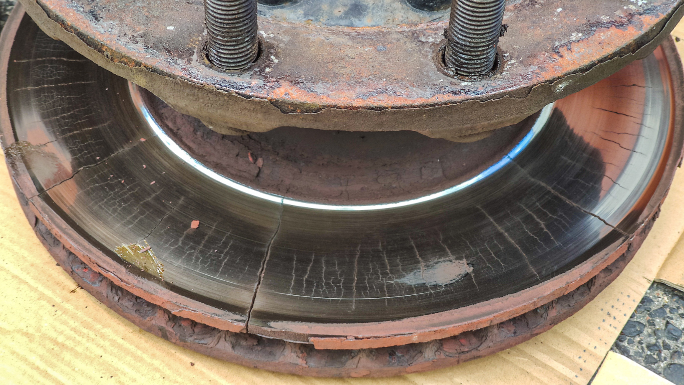 W wyniku kontroli stwierdzono na pierwszej osi ciągnika liczne pęknięcia tarczy hamulcowej dyskwalifikujące ten element z dalszego użytkowania. Usterkę zakwalifikowano jako niebezpieczną, zakazano dalszej jazdy do czasu usunięcia nieprawidłowości. Kierowca wezwał na miejsce mobilny serwis i niezwłocznie rozpoczął naprawę, aby uniknąć zakazu dalszej jazdy oraz zatrzymania dowodu rejestracyjny uszkodzonego środka transportu. Demontaż uszkodzonej tarczy potwierdził trafność decyzji inspektorów co do stanu technicznego.