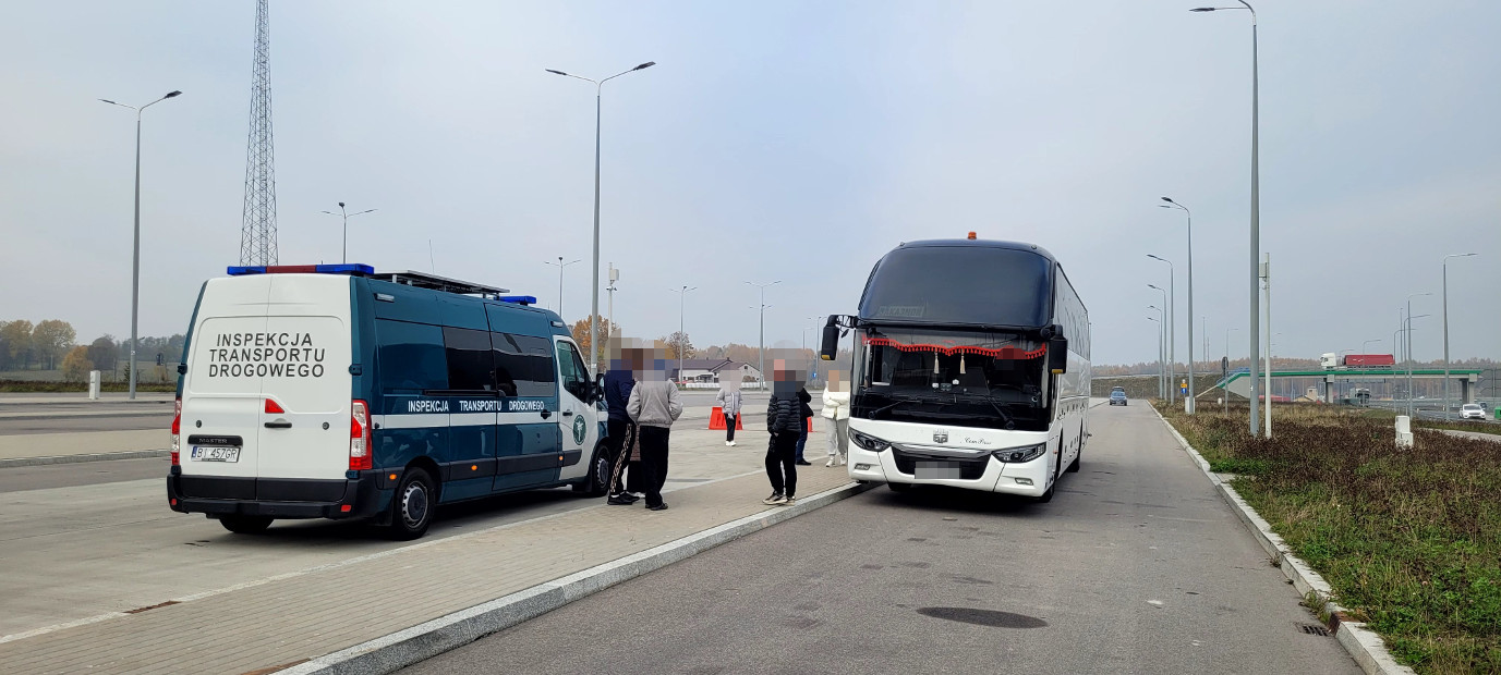 W sobotę (26.10) w przygranicznej miejscowości Budzisko zatrzymano do kontroli autobus należący do przewoźnika mołdawskiego, którym wykonywano międzynarodowy okazjonalny przewóz drogowy 41 osób na trasie Kiszyniów – Moskwa – Kiszyniów. Trasę liczącą ok. 6000 km obsługiwało 2 kierowców, którzy rejestrowali swoją aktywność na 4 kartach kierowców. W związku z ujawnionymi naruszeniami niewłaściwej obsługi sprawnego technicznie tachografu skutkujące nierejestrowaniem mi.in. rzeczywistych aktywności czy posługiwanie się przez kierujących kartami kierowców nie będącymi ich własnością wobec przewoźnika została nałożona kara finansowa w wysokości 16000 złotych ograniczona ustawowo do 12000 złotych. Sami kierowcy kierowcy zostali ukarani łącznie 8 mandatami karnymi na łączną kwotę 8150 złotych. Kierowcom zakazano dalszej jazdy do momentu wykonania prawidłowego odpoczynku dobowego.