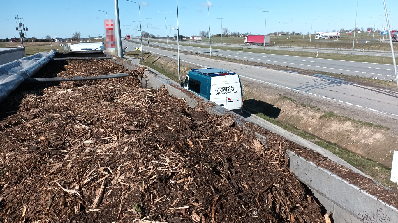 W poniedziałkowy poranek 3 kwietnia 2023 r. inspektorzy z suwalskiego oddziału Wojewódzkiego Inspektoratu Transportu Drogowego w Białymstoku sprawdzili ciężarówkę przewożącą biomasę na terenie Suwalskiej Specjalnej Strefy Ekonomicznej.