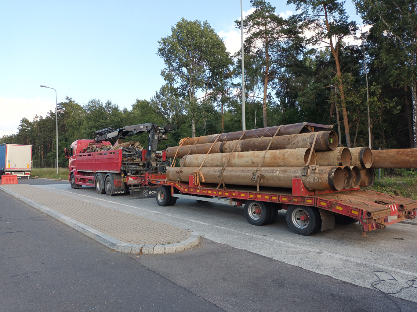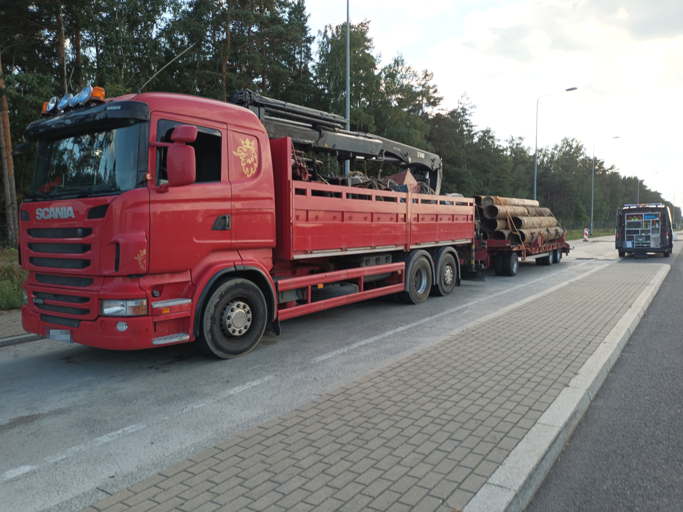Wczoraj 6 września 2023r. na drodze krajowej nr 8 w pobliżu miejscowości Jeżewo inspektorzy z Wojewódzkiego Inspektoratu Transportu Drogowego w Białymstoku przeprowadzili kontrolę ciężarówki przewożącej elementy studni głębinowej na trasie z Łomży do Kleosina.