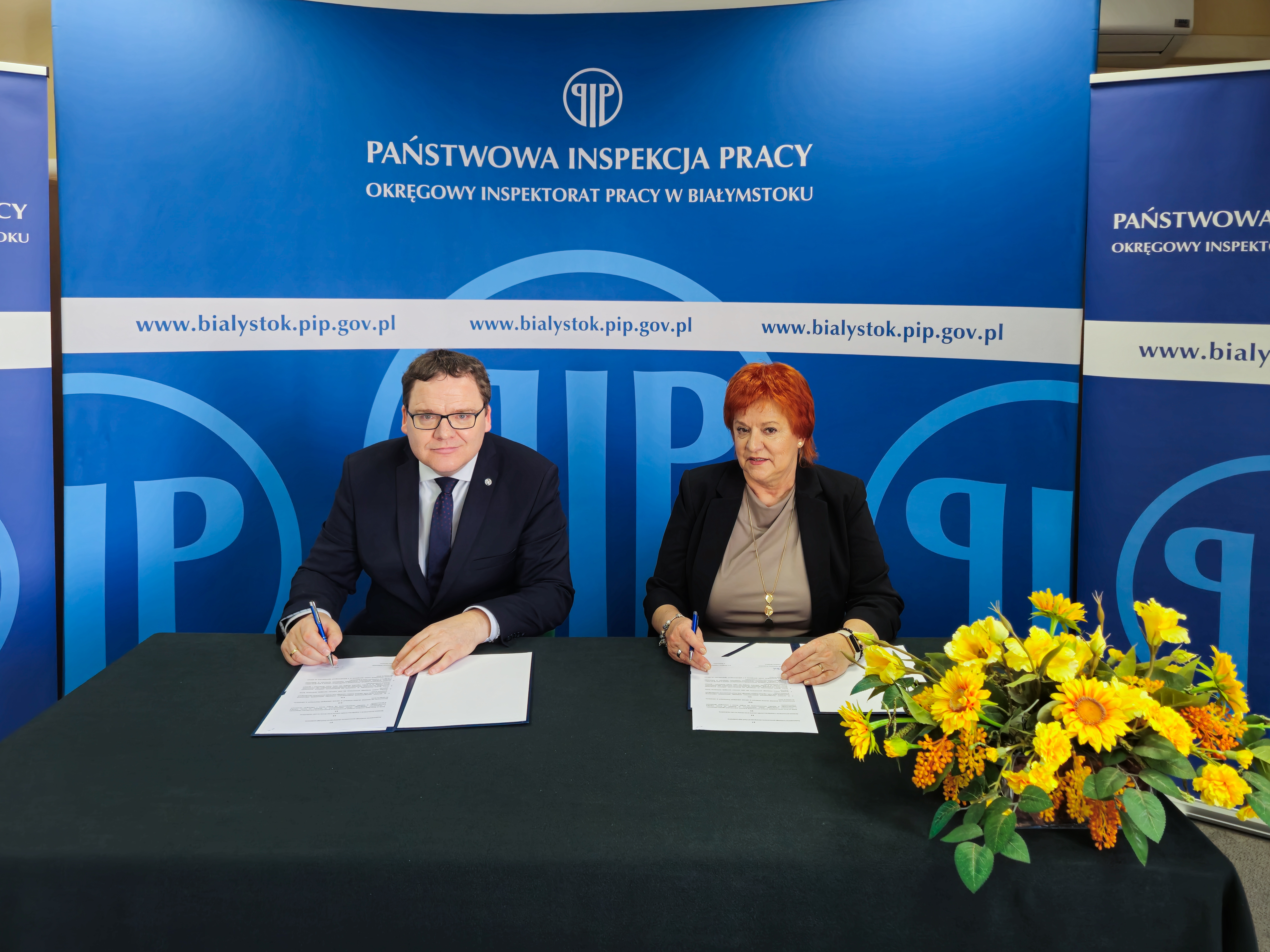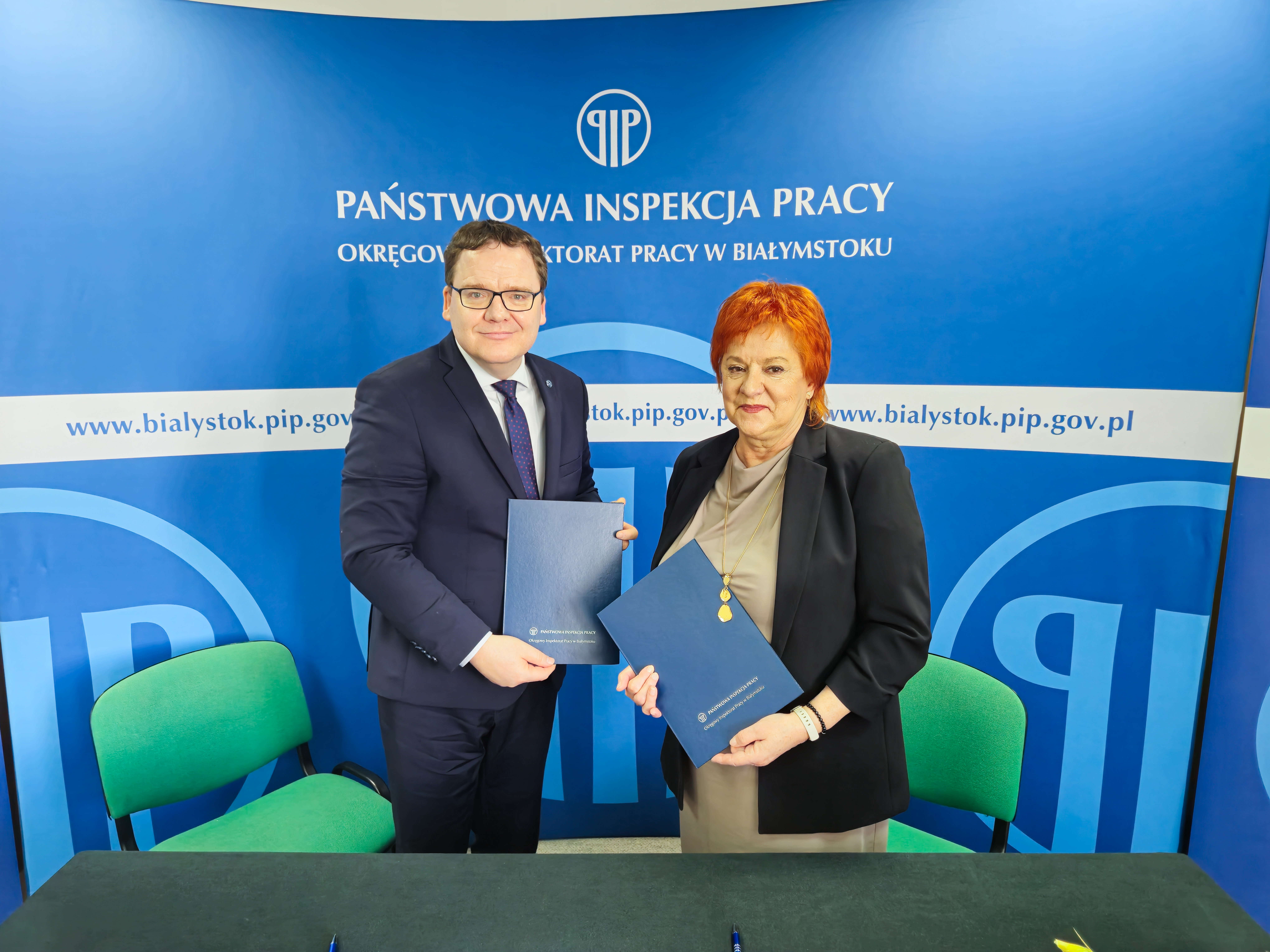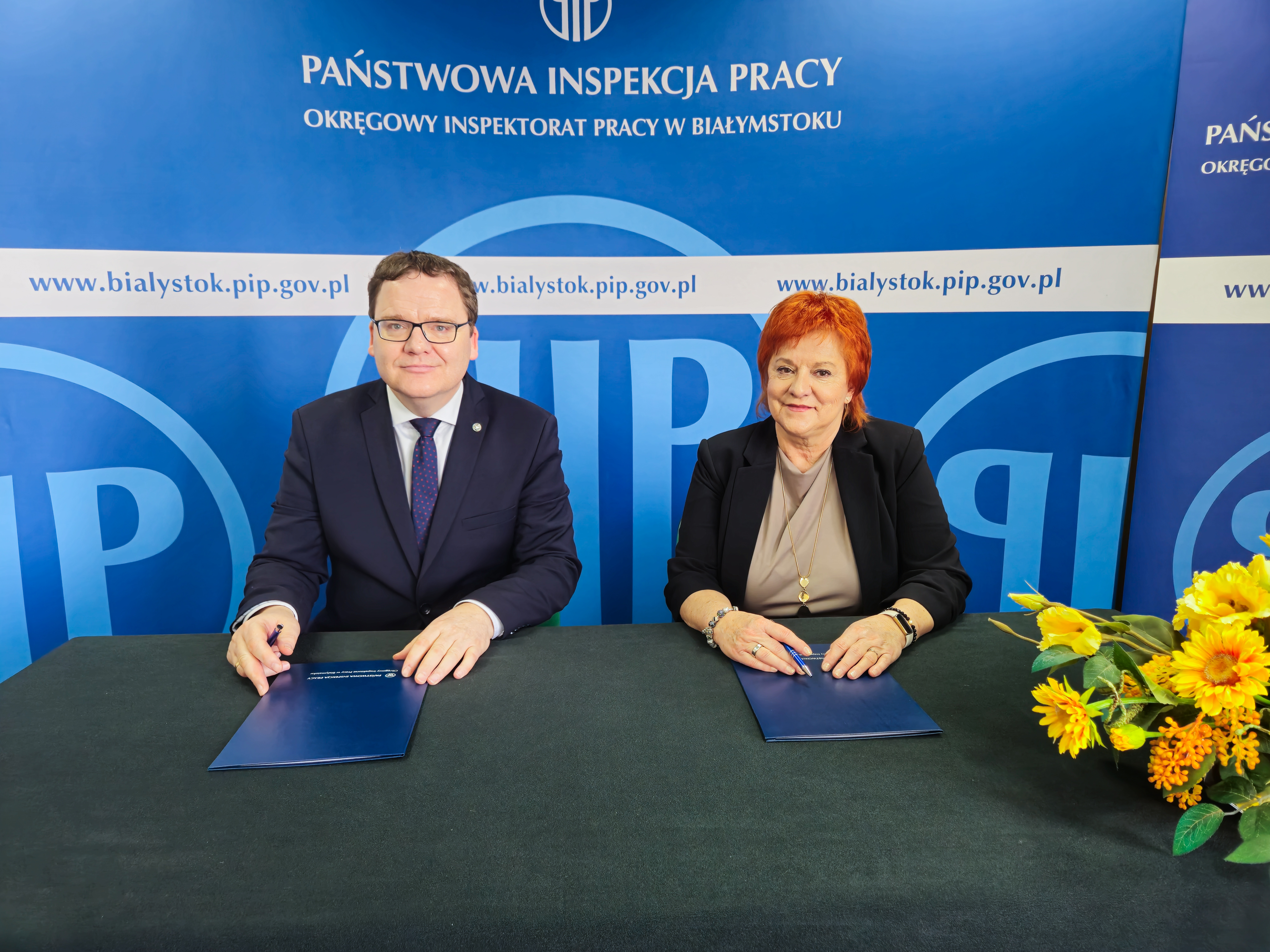 15 kwietnia 2025 r. Podlaski Państwowy Wojewódzki Inspektor Sanitarny w Białymstoku i Okręgowy Inspektor Pracy w Białymstoku podpisali porozumienie o współpracy