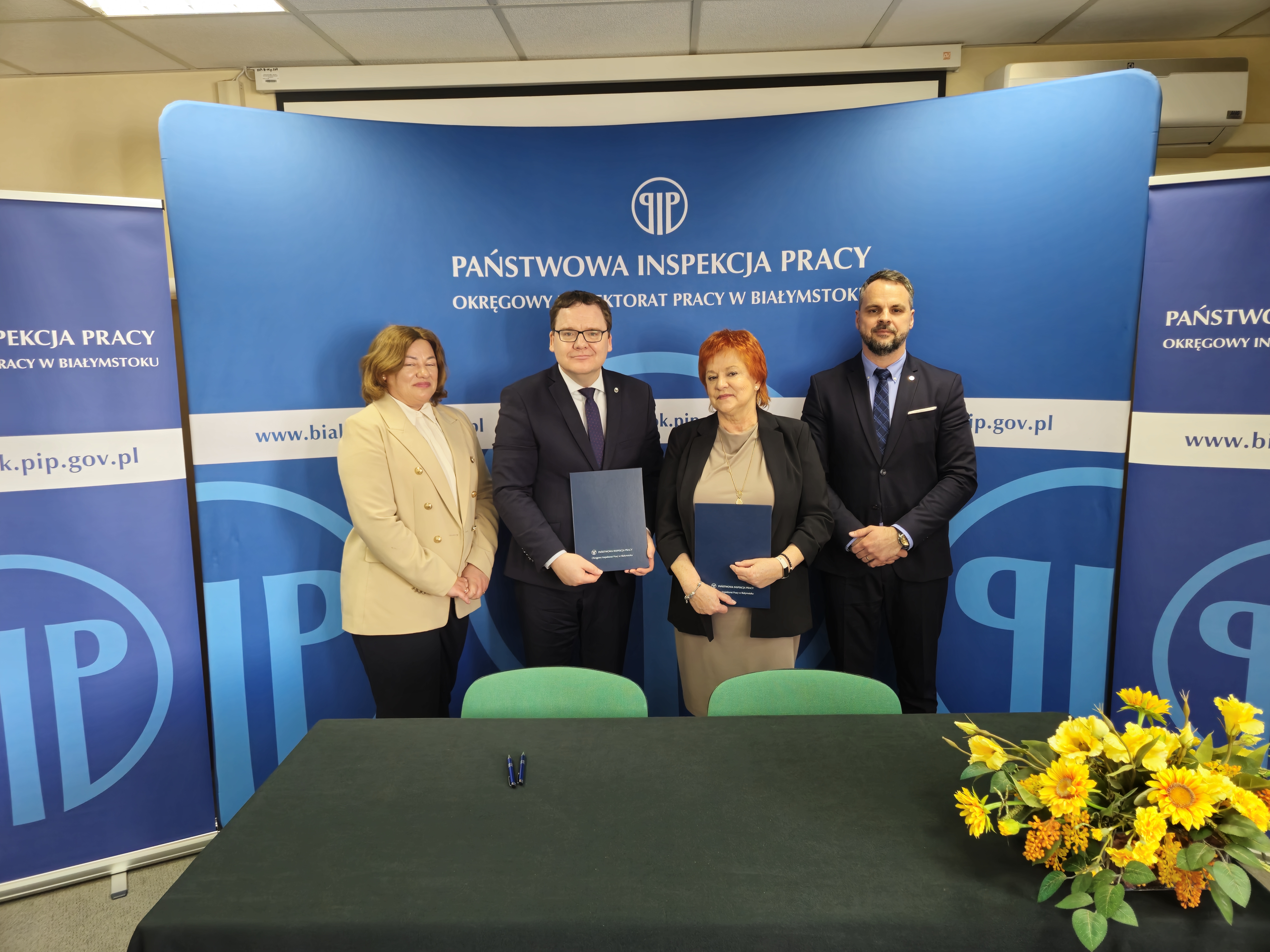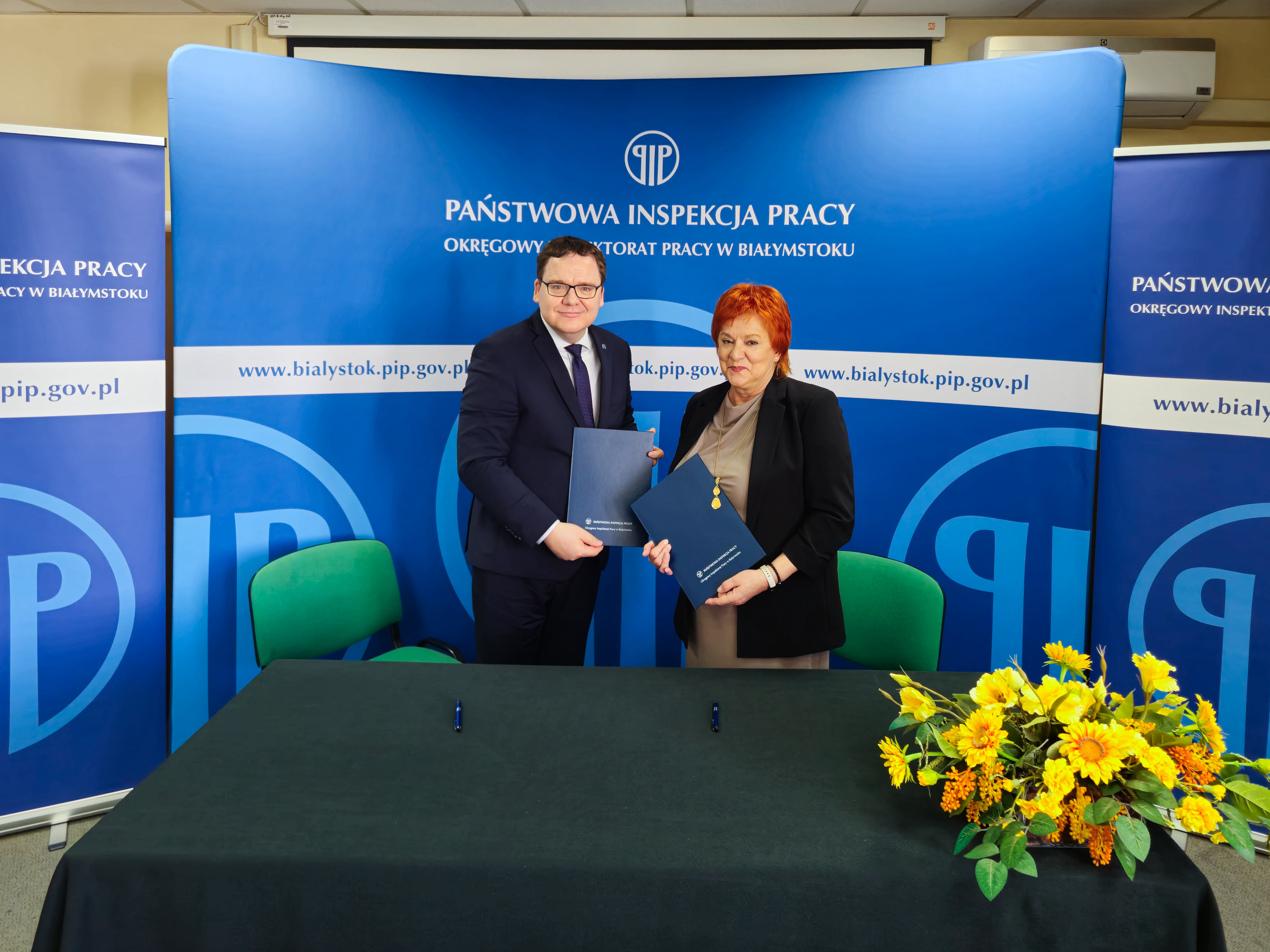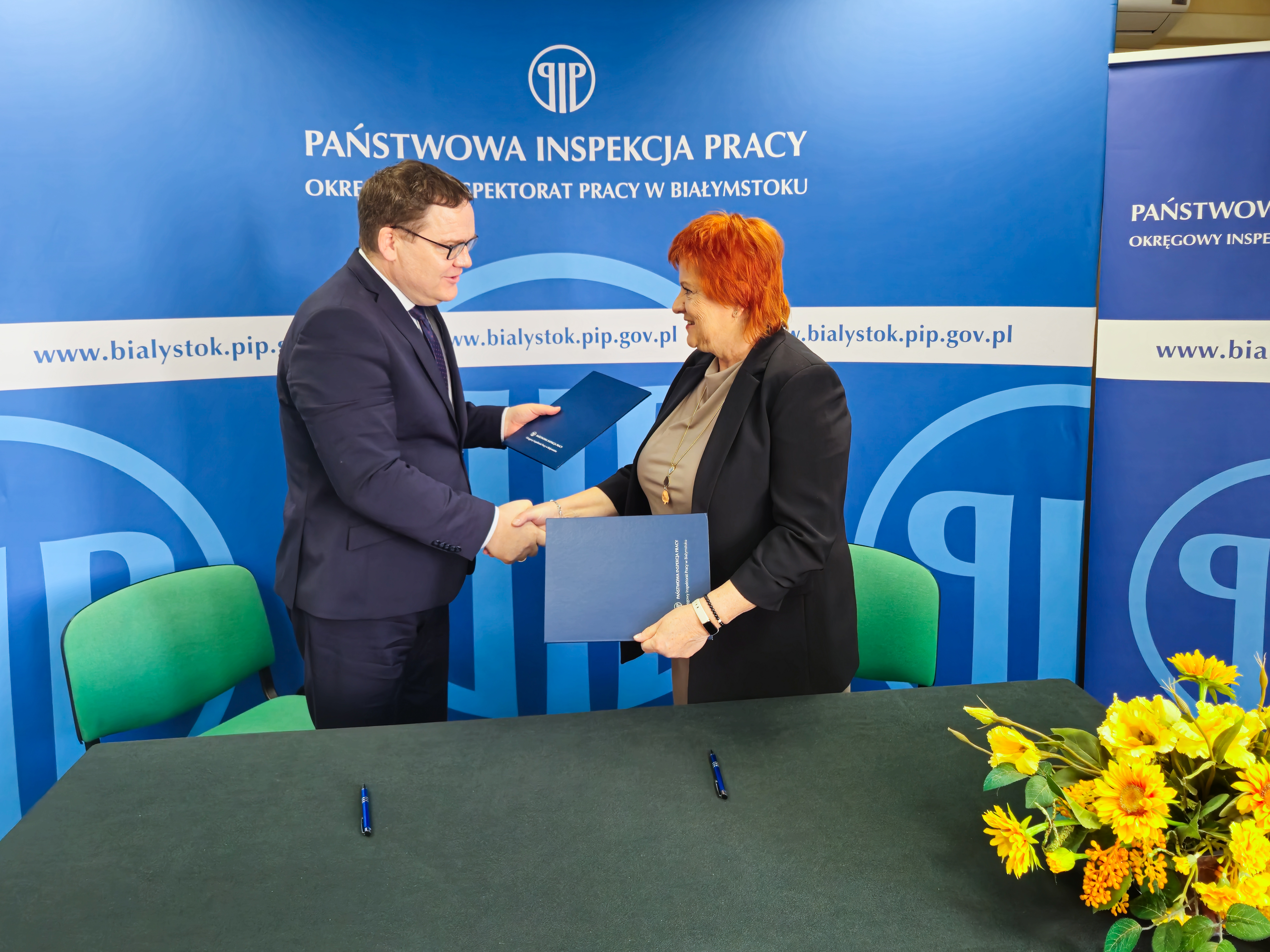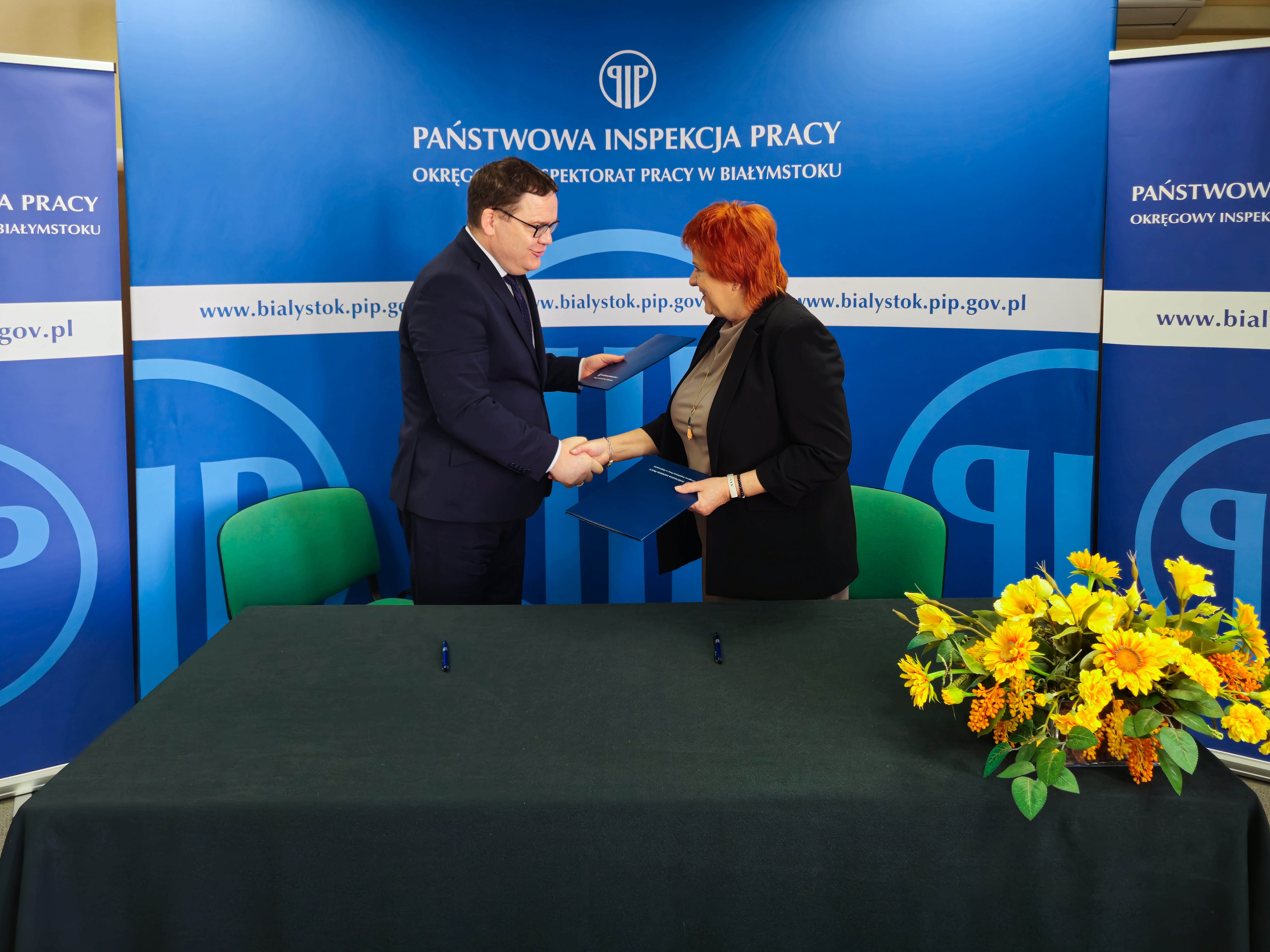 15 kwietnia 2025 r. Podlaski Państwowy Wojewódzki Inspektor Sanitarny w Białymstoku i Okręgowy Inspektor Pracy w Białymstoku podpisali porozumienie o współpracy