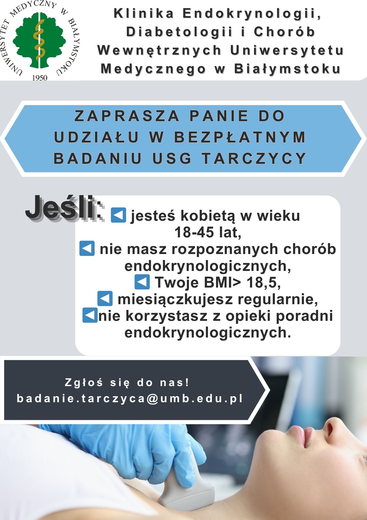 📧 badanie.tarczyca@umb.edu.pl – celem umówienia wizyty.