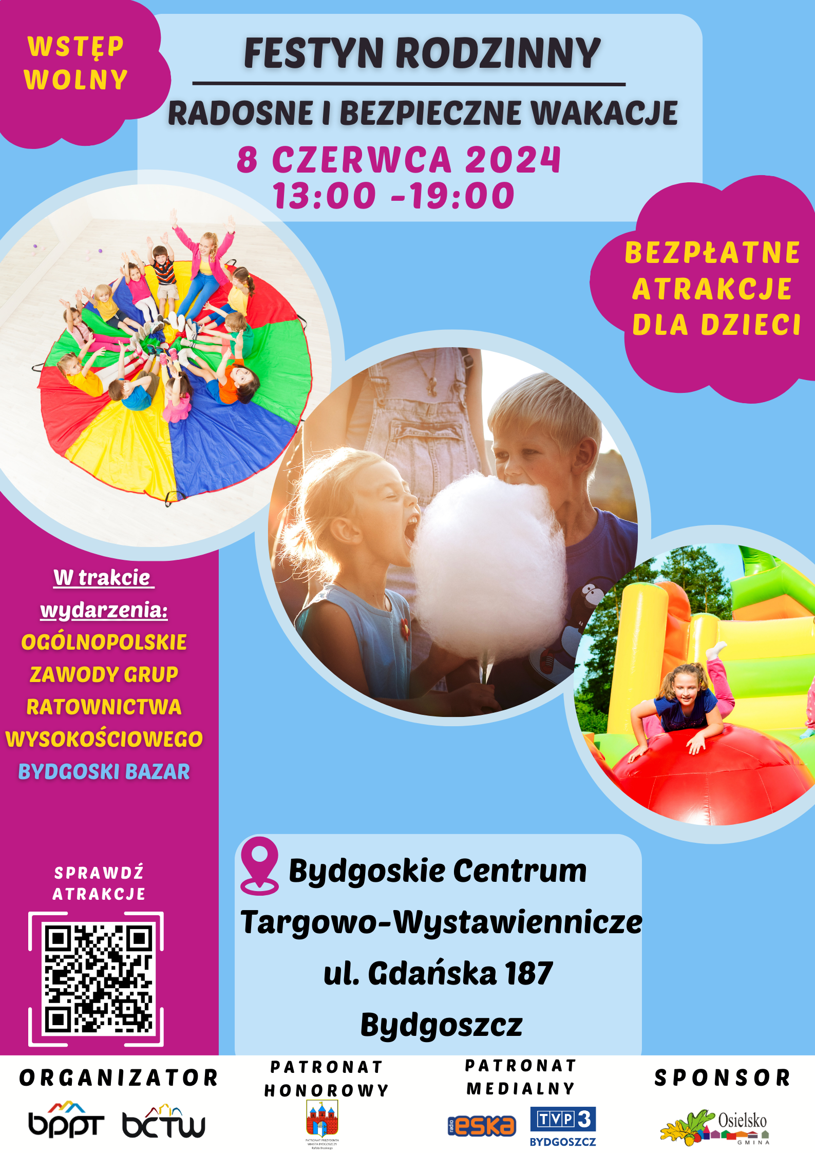 W najbliższą sobotę odbędzie się III edycja wydarzenia pt. „Radosne i bezpieczne wakacje” w Bydgoskim Centrum Targowo-Wystawienniczym w godzinach 13:00–19:00. Impreza skierowana jest do wszystkich, którzy chcieliby miło spędzić czas, a przy okazji dowiedzieć się jak bezpiecznie wypoczywać podczas wakacji. Zabawa będzie przeplatała się z edukacją na temat bezpieczeństwa w trakcie wypoczynku.