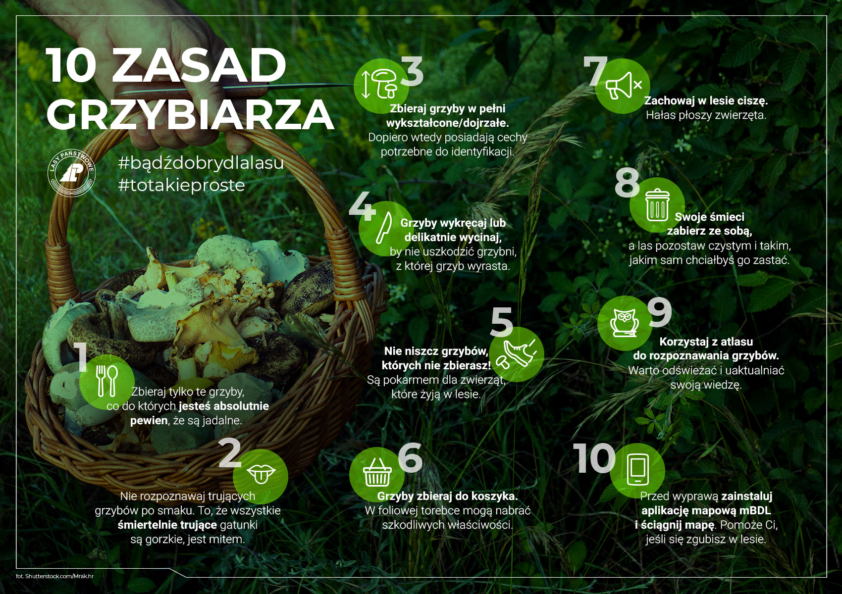 Ciekawe informacje na temat grzybobrania oraz bezpiecznego poruszania się po lesie, znajdują się także w zamieszczonych poniżej materiałach informacyjnych przygotowanych przez Lasy Państwowe.