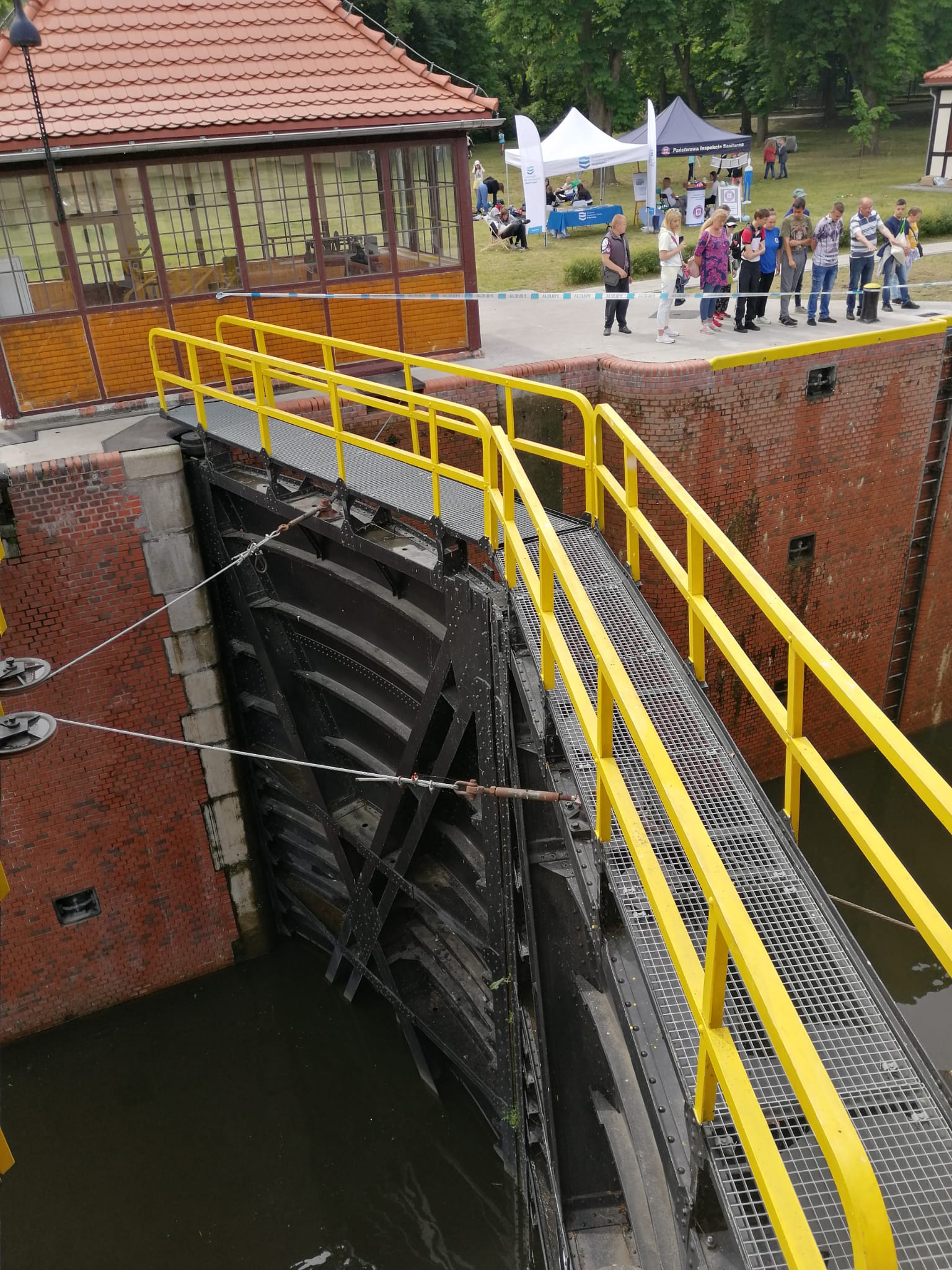 Przygotowana edukacja w plenerze skierowana była do uczniów szkół podstawowych. Zajęcia podzielone zostały na trzy bazy profilaktyczne. Pierwsza z nich zlokalizowana była na Śluzie Okole (Śluza nr 3). Zostały tu przygotowane punkty informacyjno-edukacyjne zarówno przez gospodarza programu RZGW w Bydgoszczy, jak i WSSE w Bydgoszczy. Poruszana tematyka dotyczyła szeroko rozumianej wody: jako podstawy życia, utrzymania higieny, profilaktyki chorób zakaźnych i zatruć pokarmowych oraz zasad bezpiecznej kąpieli i wypoczynku, a także profilaktyki uzależnień. Przedstawione zagadnienia pozwoliły na holistyczne przedstawienie obrazu naszego wspólnego dobra, jakim jest woda. Zwrócono uwagę na ekologiczne wykorzystywanie wody oraz zasady pozwalające na jej oszczędzanie. Dodatkowo każdy z uczestników miał okazję zapoznać się z portalem informacyjnym Państwowej Inspekcji Sanitarnej o jakości wody w kąpieliskach w Polsce - Serwisem Kąpieliskowym. Uczestnicy pierwszego przystanku edukacyjnego mogli również zapoznać się z historią budowy śluzy oraz jej funkcjonowaniem, między innymi poprzez pokaz „śluzowania” jednostki policyjnej.