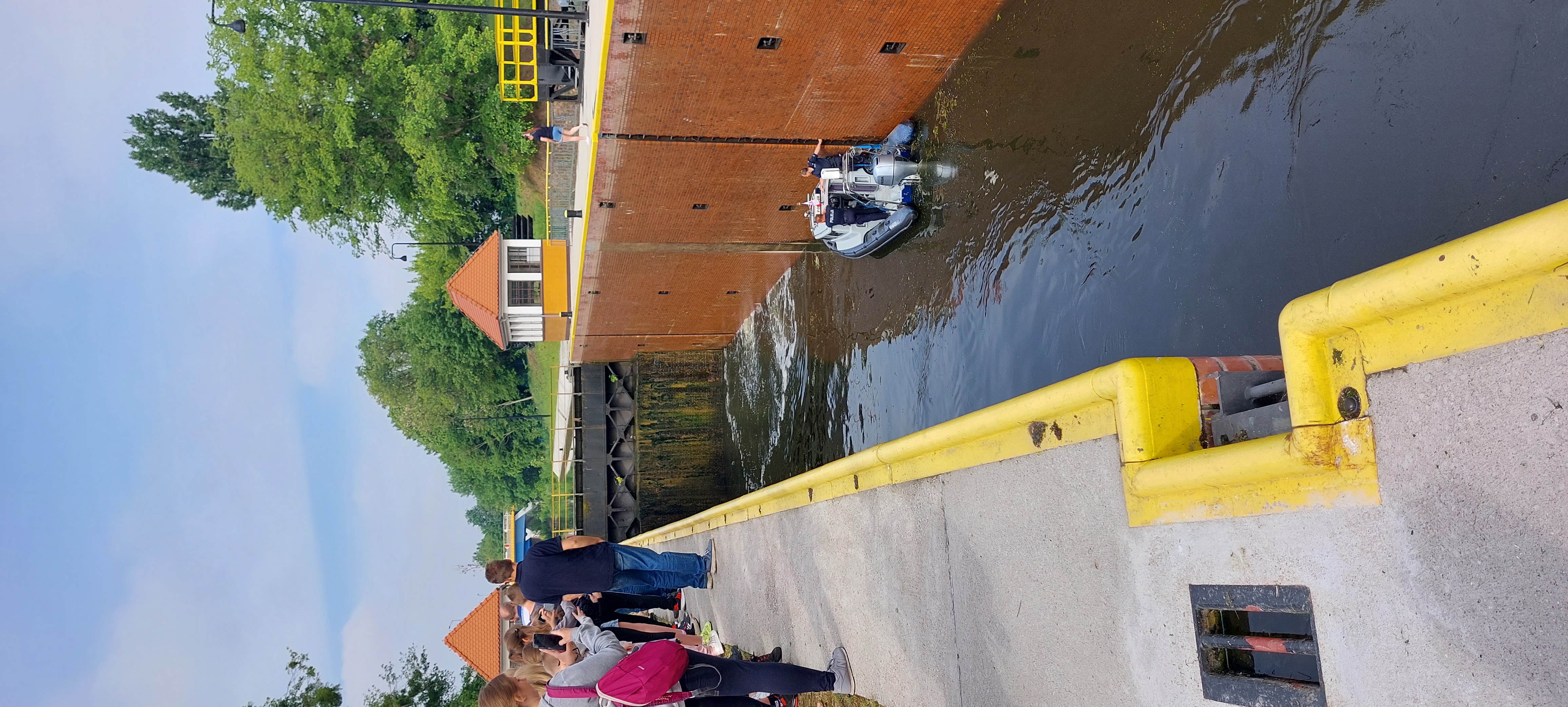 Ostatnią bazą edukacyjną był Kanał Bydgoski w pobliżu Muzeum. Tam na uczestników zajęć czekali policjanci, którzy przeprowadzili lekcję w teorii i praktyce. Z uwagi na zbliżające się wakacje omówiono z uczniami zasady bezpieczeństwa na plaży. Sprawdzono wiedzę na temat funkcjonowania kąpielisk niestrzeżonych i strzeżonych, charakterystyczne oznakowanie oraz oflagowanie. Zachęcano do korzystania ze sprzętu do rekreacji wodnej z wykorzystaniem kamizelek ratunkowych. Przeprowadzono warsztat dotyczący udzielania pomocy osobom tonącym poprzez koło ratunkowe oraz rzutki ratownicze. Wypracowano algorytm powiadamiania służb ratunkowych w stacji zagrożenia zdrowia i życia za pomocą numeru alarmowego 112, 601 100 100 oraz aplikacji Ratunek. Na koniec wiedzę teoretyczną przełożono na zajęcia praktyczne podczas spływu kajakowego.