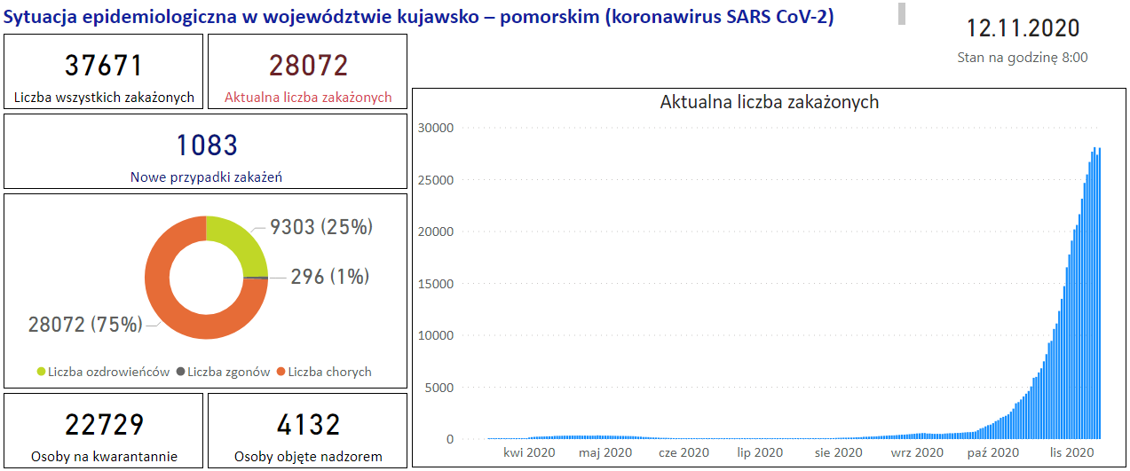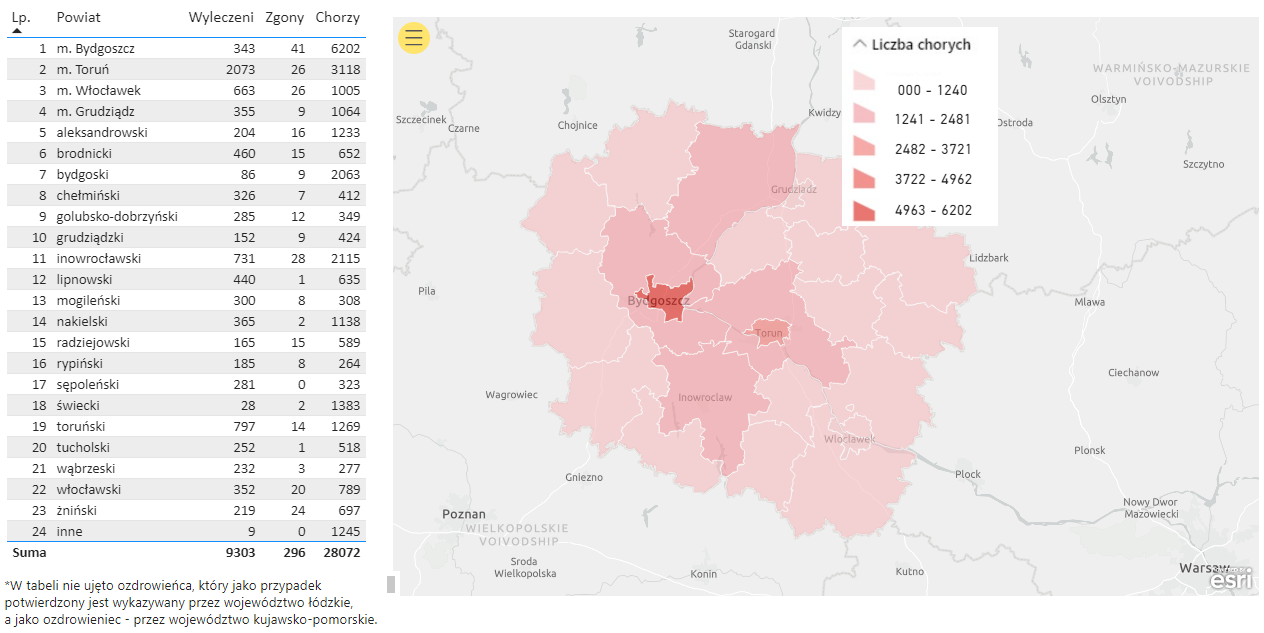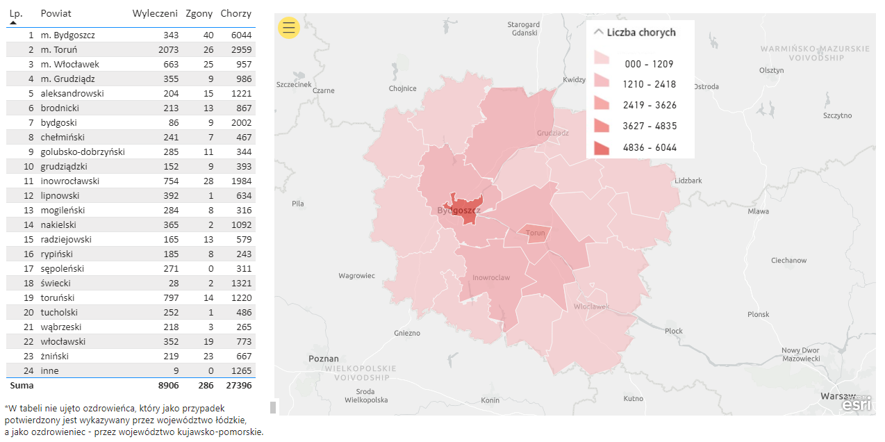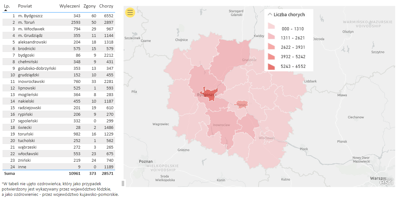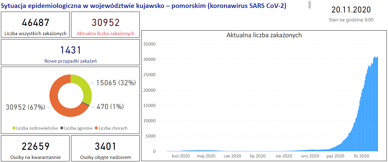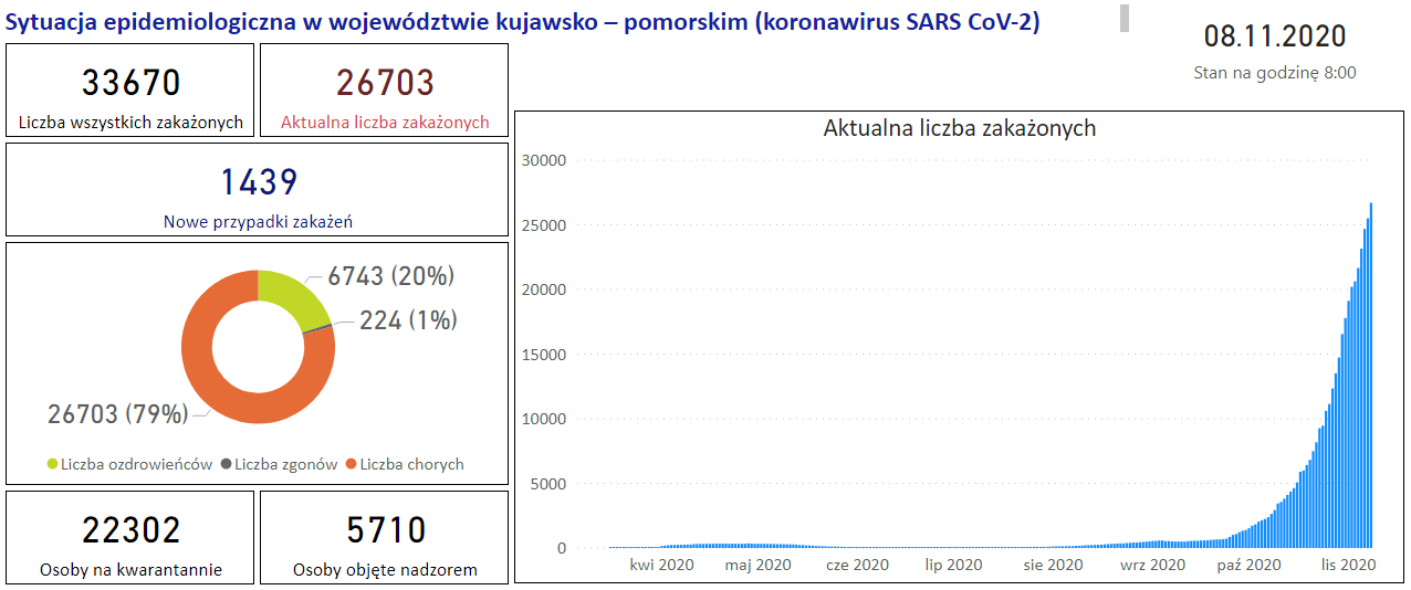 Dane epidemiologiczne dotyczące zachorowań na COVID-19 w województwie kujawsko-pomorskim