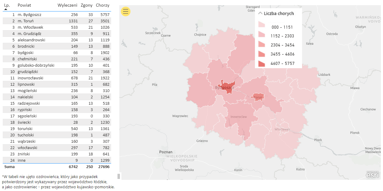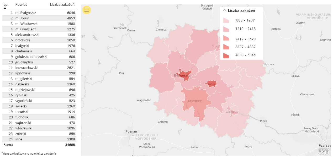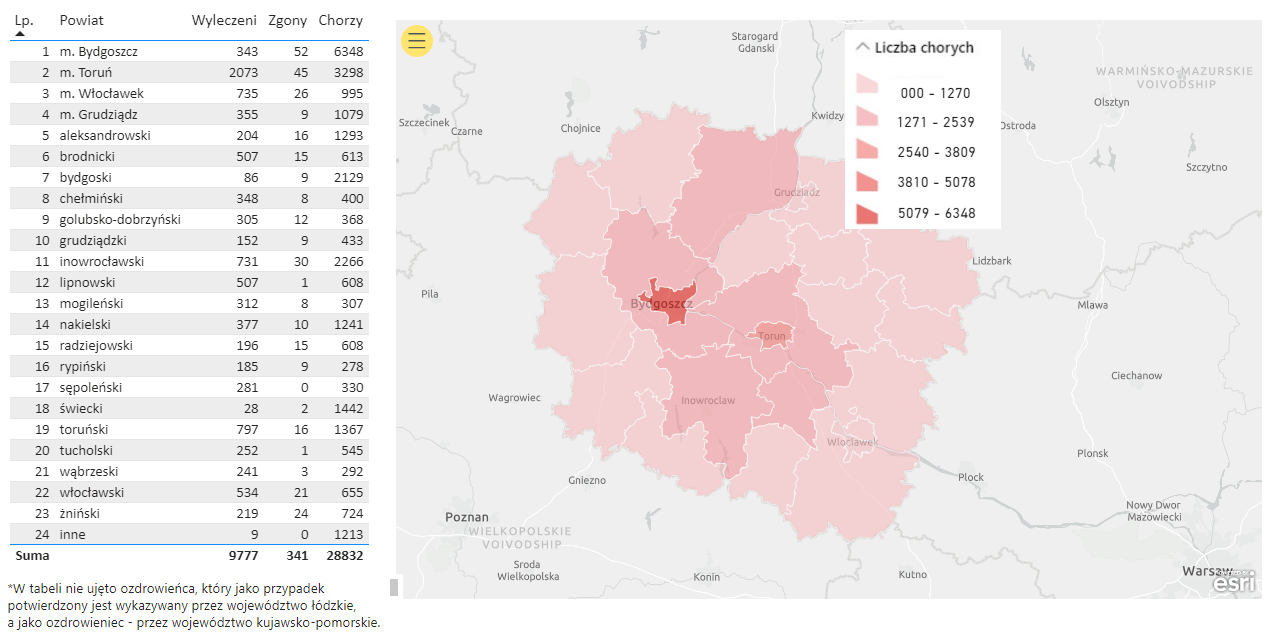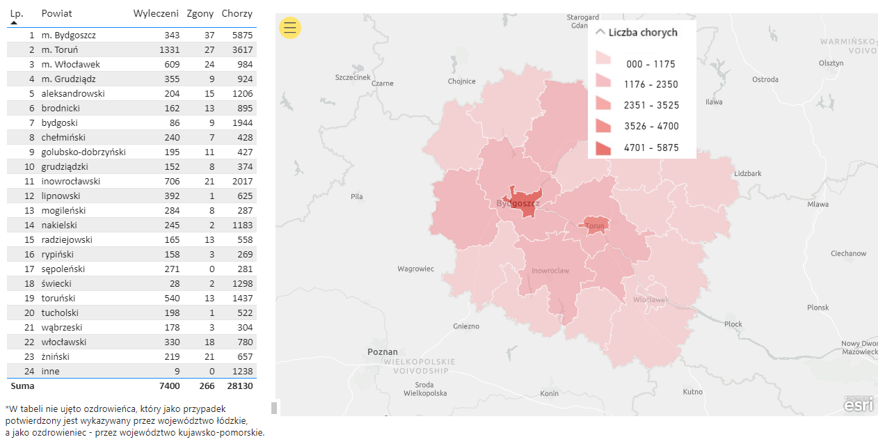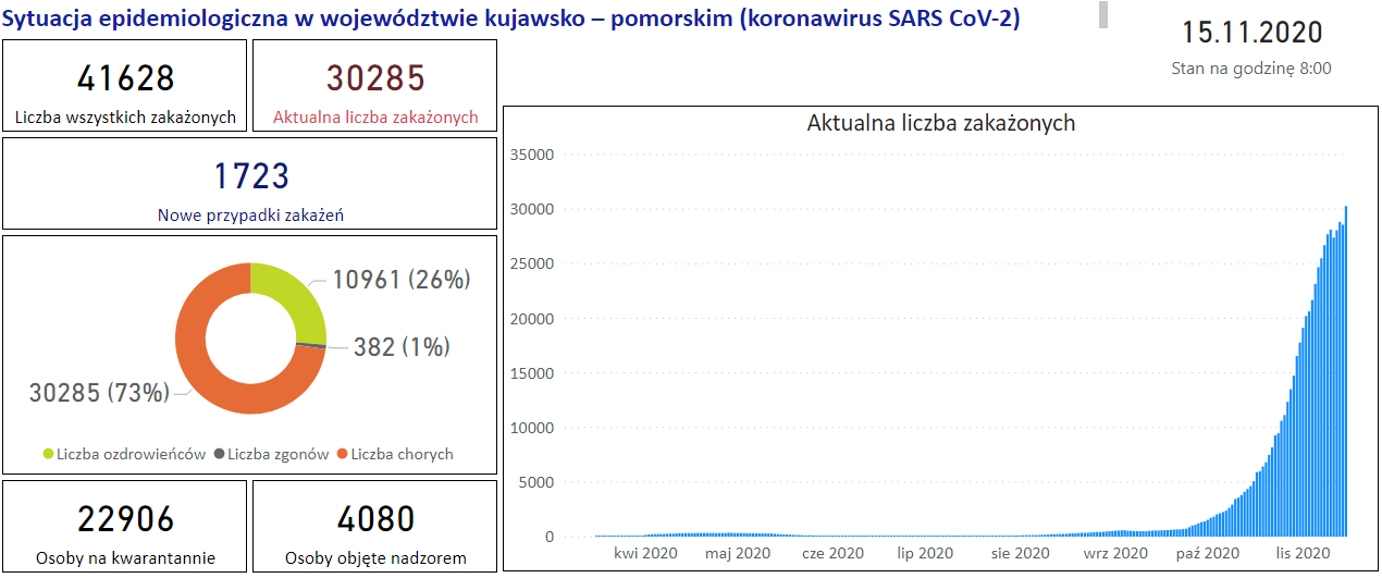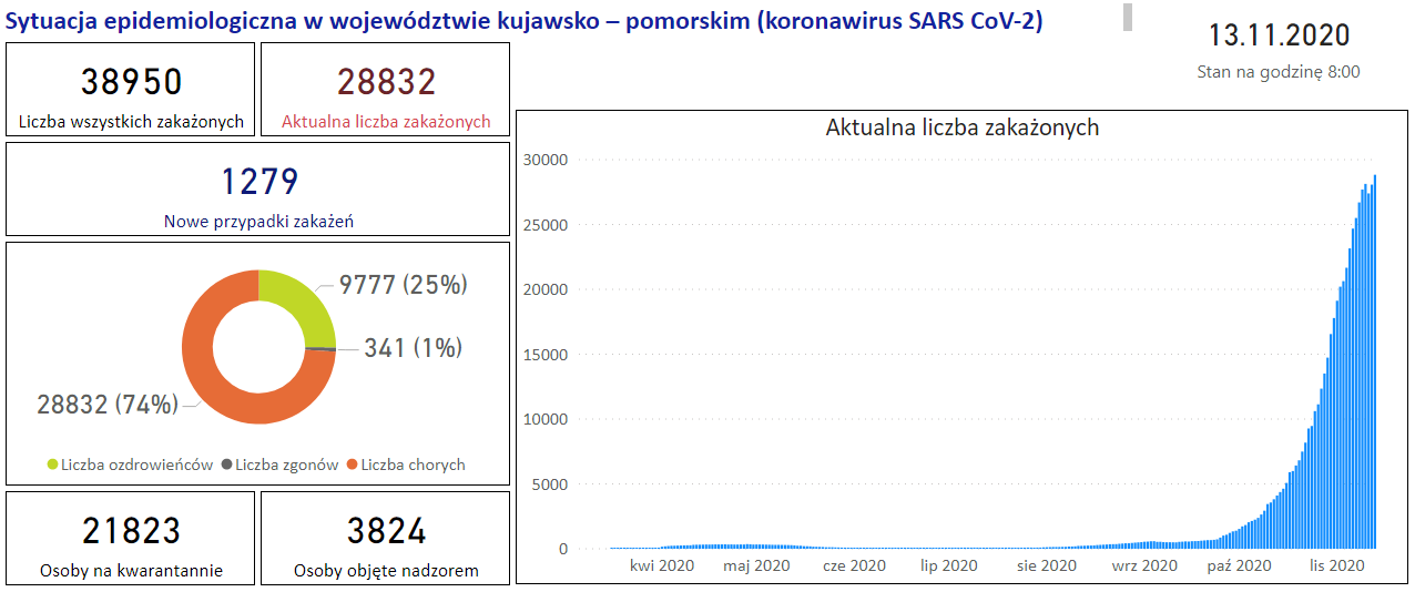 Dane epidemiologiczne dotyczące zachorowań na COVID-19 w województwie kujawsko-pomorskim
