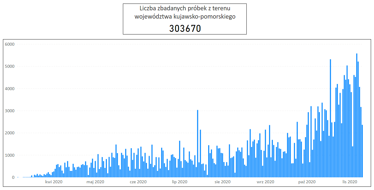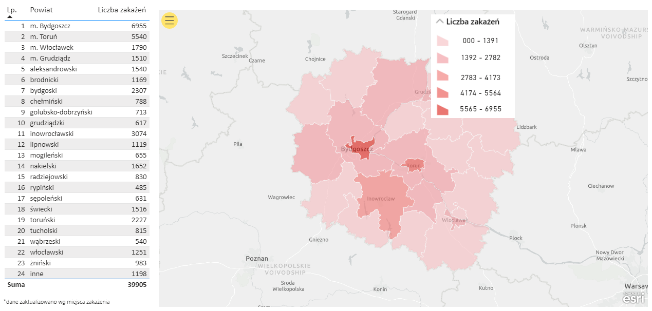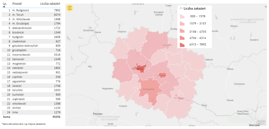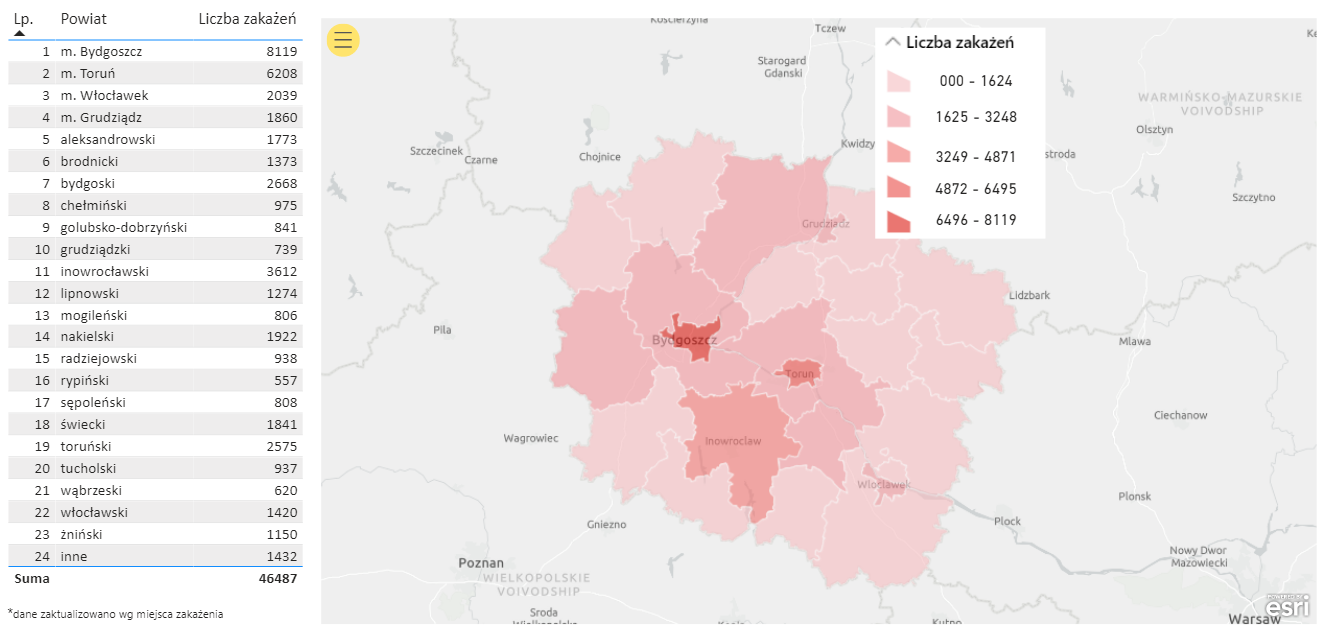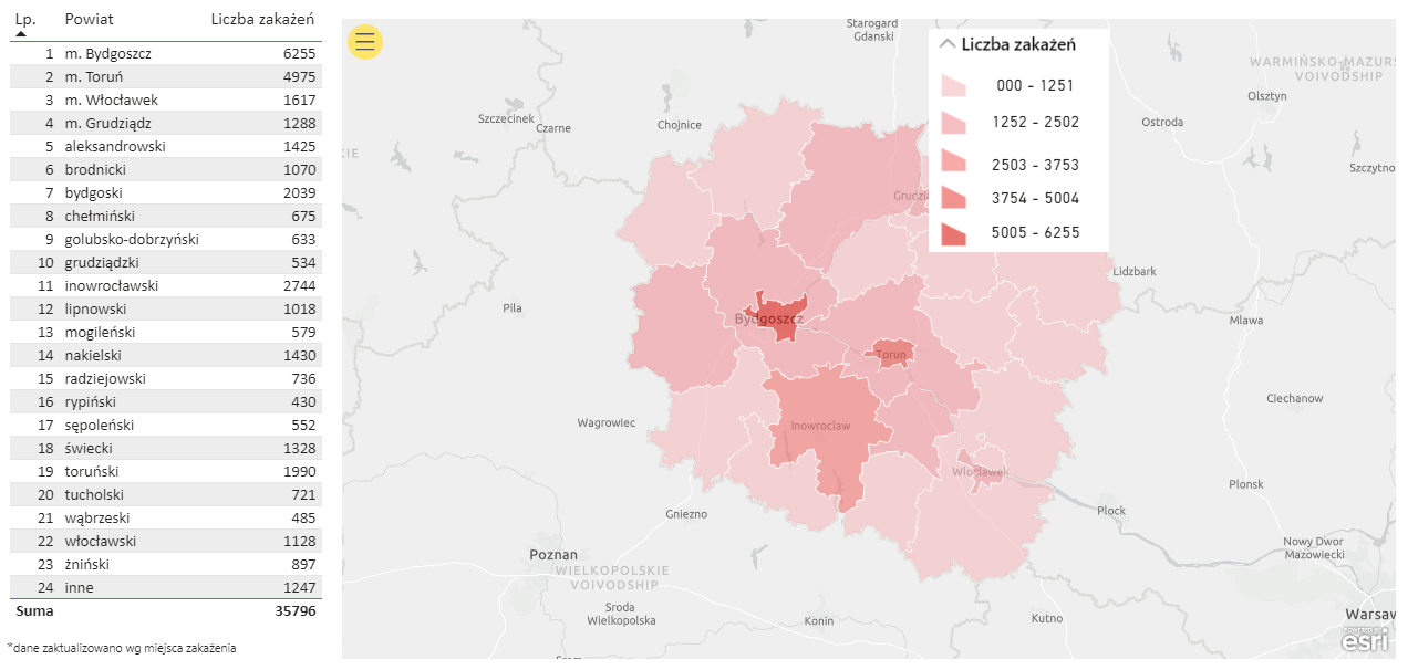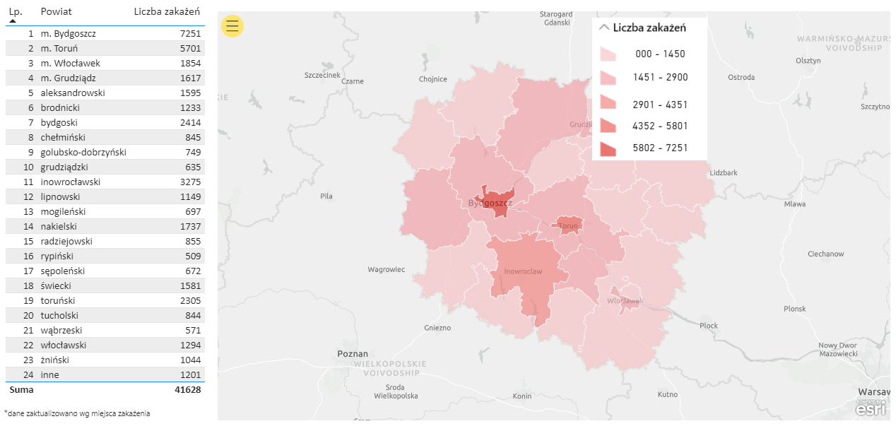 Dane epidemiologiczne dotyczące zachorowań na COVID-19 w województwie kujawsko-pomorskim