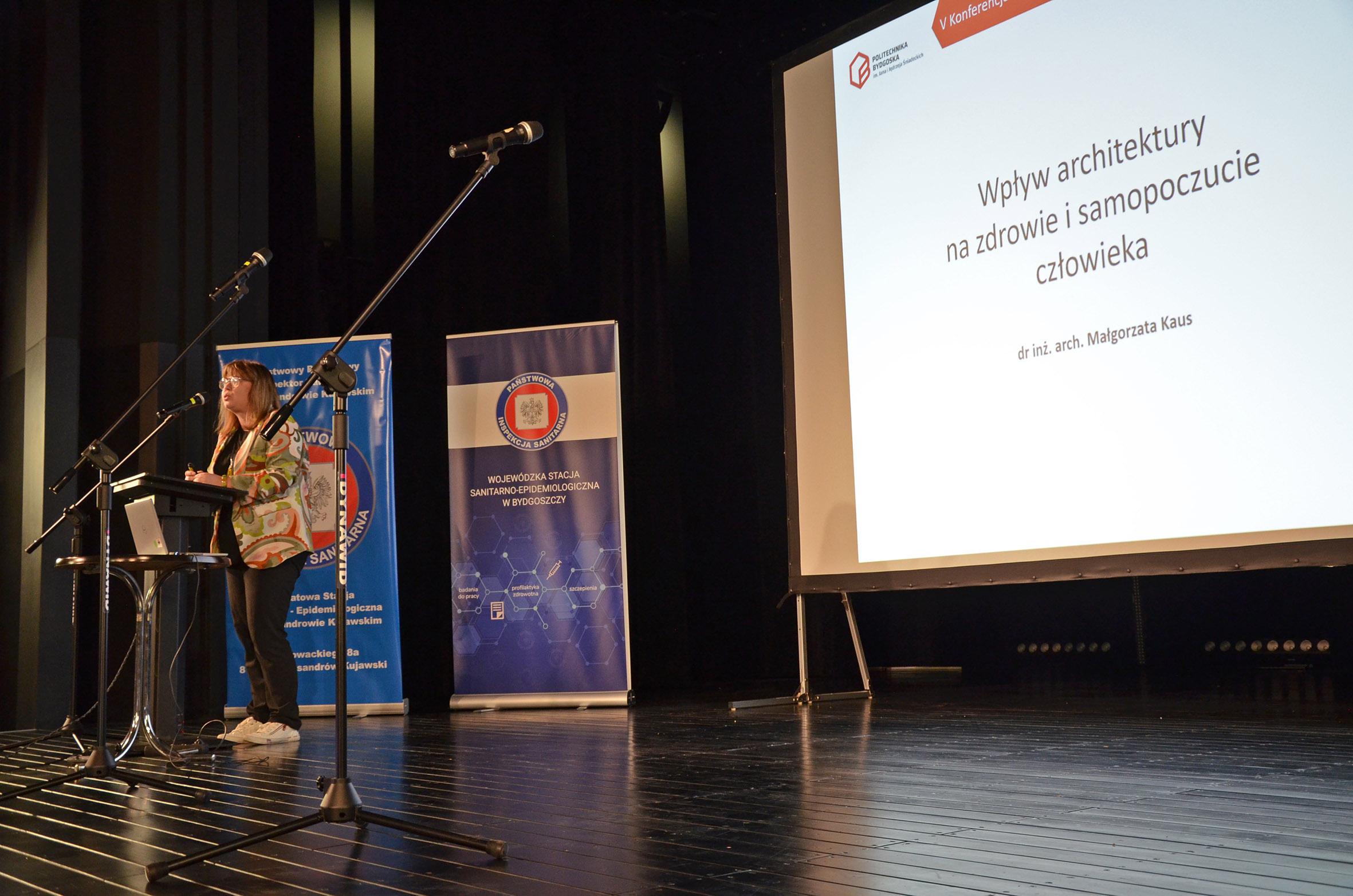 Przy komplecie publiczności, cykl prelekcji rozpoczęła dr inż. arch. Małgorzata Kaus, adiunkt w Katedrze Architektury i Urbanistyki na Politechnice Bydgoskiej im. Jana i Jędrzeja Śniadeckich, która przedstawiła wykład pn. „Wpływ architektury na zdrowie i samopoczucie człowieka”.