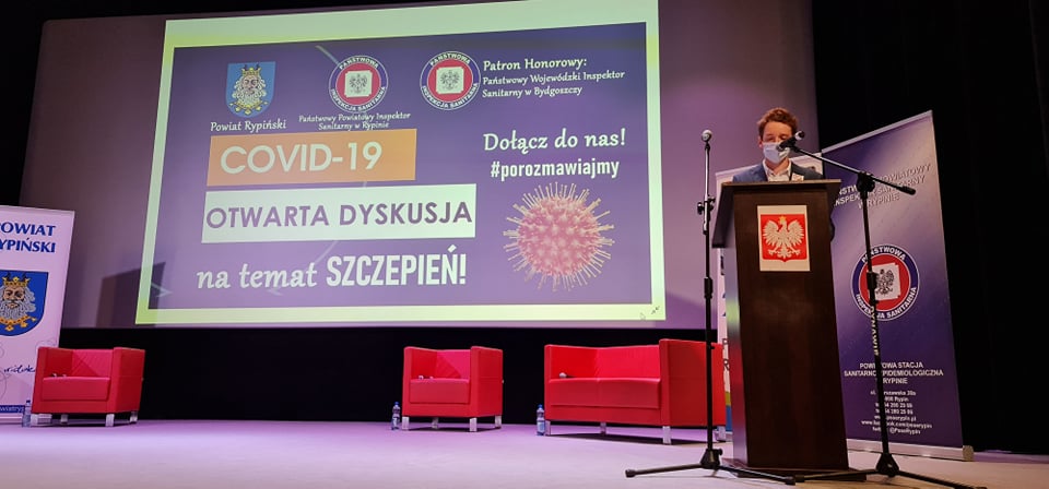 Otwarta dyskusja na temat szczepień przeciwko COVID-19 to pomysł Starosty rypińskiego Jarosława Sochackiego oraz Państwowego Powiatowego Inspektora Sanitarnego w Rypinie, Beaty Grabowskiej. Spotkanie zostało objęte honorowym patronatem Państwowego Wojewódzkiego Inspektora Sanitarnego, Wojciecha Koper, a gościem specjalnym był dr n. med. Paweł Rajewski – konsultant wojewódzki w dziedzinie chorób zakaźnych dla województwa kujawsko-pomorskiego.