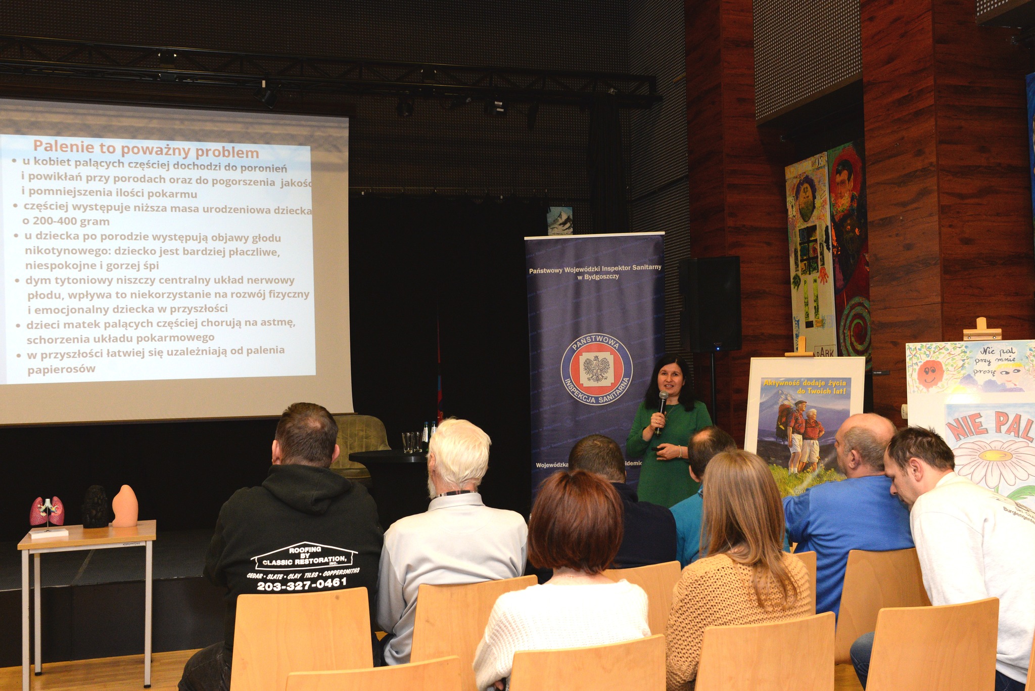 W Światowym Dniu Rzucania Palenia w Salonie Hoffman Kujawsko-Pomorskiego Centrum Kultury w Bydgoszczy, pracownicy Wojewódzkiej Stacji Sanitarno-Epidemiologicznej w Bydgoszczy przygotowali spotkanie edukacyjne połączone z prelekcją pn. "Palenie szkodzi zdrowiu, bierne palenie też!"