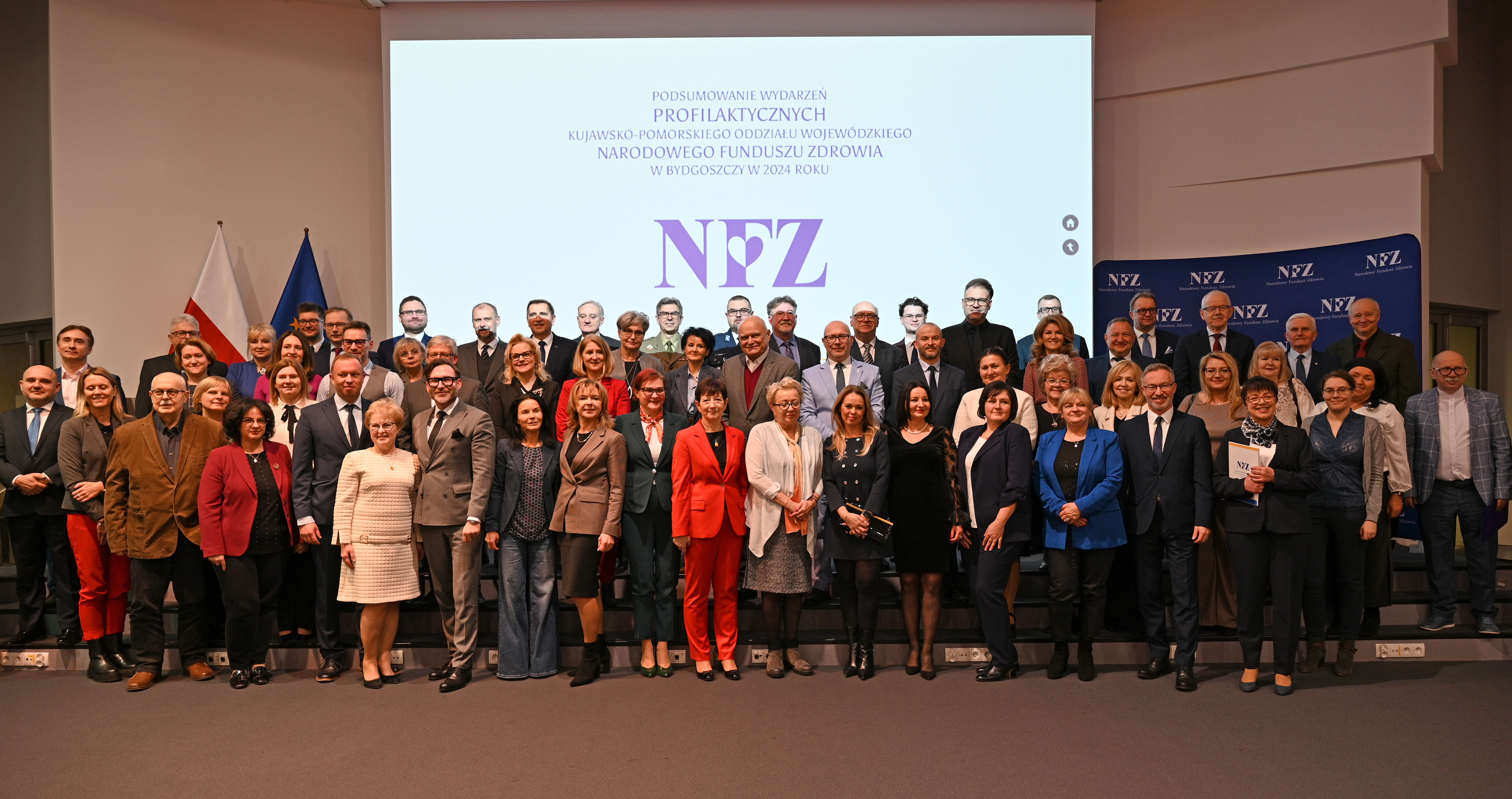 W Sali Bydgoskiego Marca w Kujawsko-Pomorskim Urzędzie Wojewódzkim w Bydgoszczy zorganizowano spotkanie podsumowujące wydarzenia profilaktyczne Kujawsko-Pomorskiego Oddziału Wojewódzkiego NFZ w Bydgoszczy w 2024 roku. W uroczystości wzięli udział przedstawiciele podmiotów leczniczych oraz służb mundurowych i inspekcji z województwa kujawsko-pomorskiego.