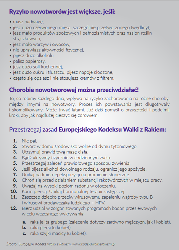 Więcej informacji na stronach: https://onkologia.org.pl/ i https://www.zwrotnikraka.pl/
