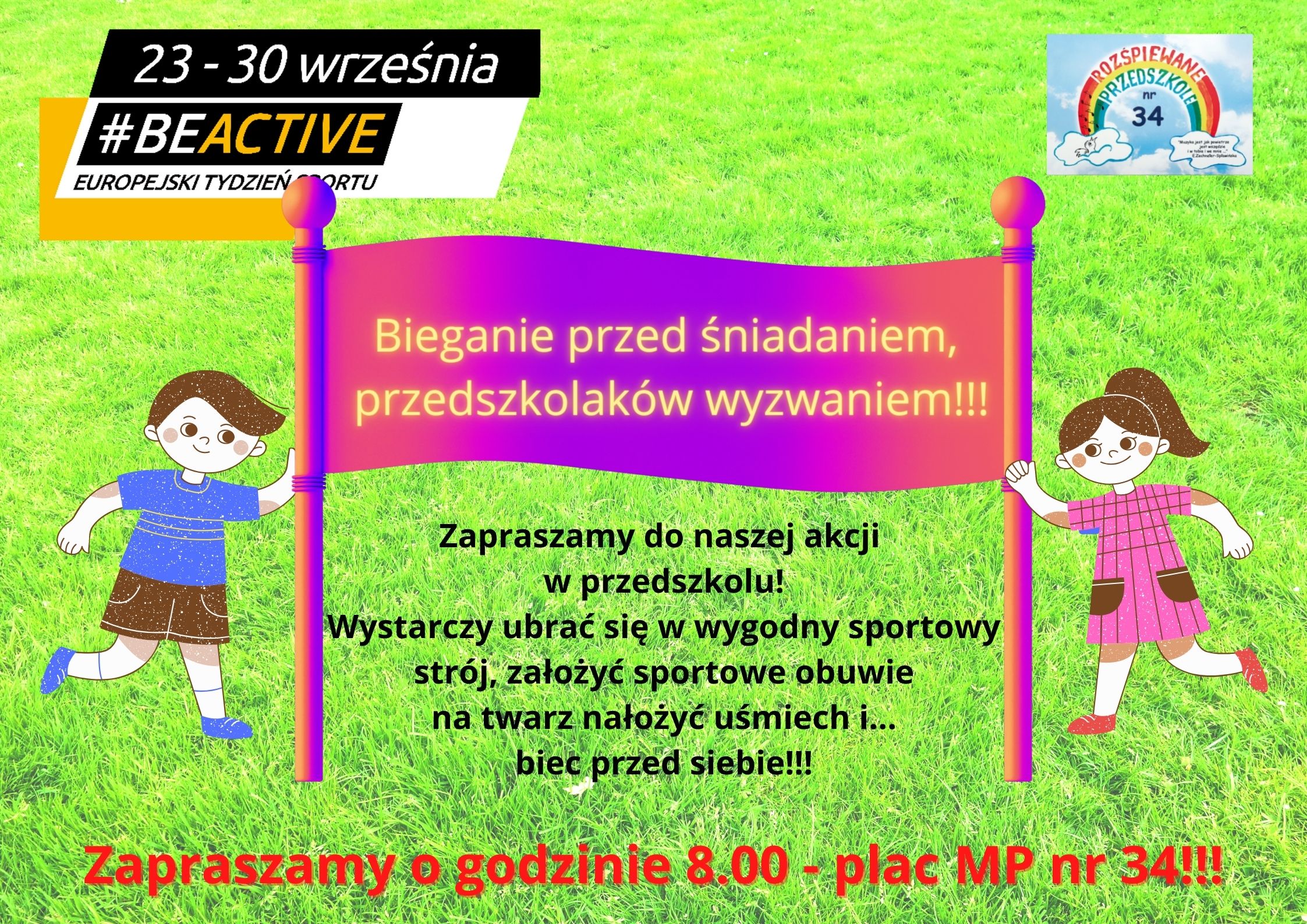 Z kolei w „Rozśpiewanym Przedszkolu" w Zielonej Górze zorganizowano w ramach tegorocznych obchodów - bieganie przed śniadaniem! Przedszkolaki zebrały się na placu zabaw i dzielnie ćwiczyły podczas rozgrzewki, następnie pokonały kilka okrążeń wokół placu. Rozgrzane i uśmiechnięte wróciły do przedszkolnych sal „Rozśpiewanego Przedszkola"
