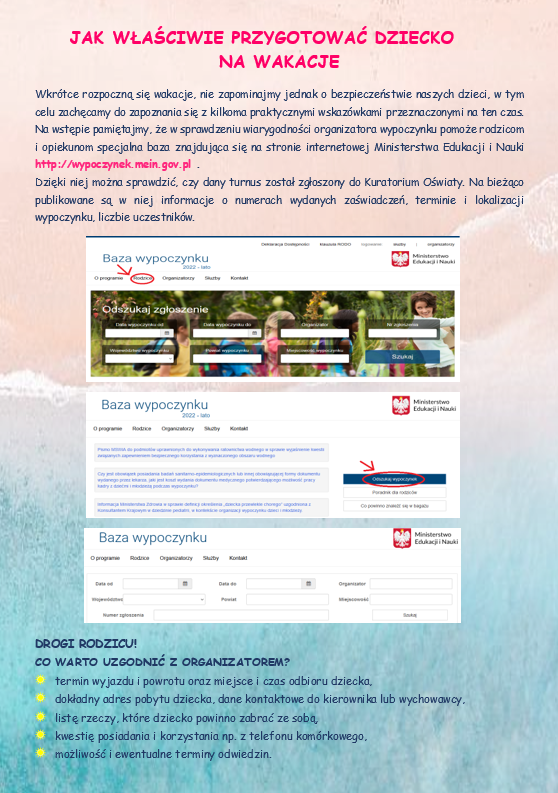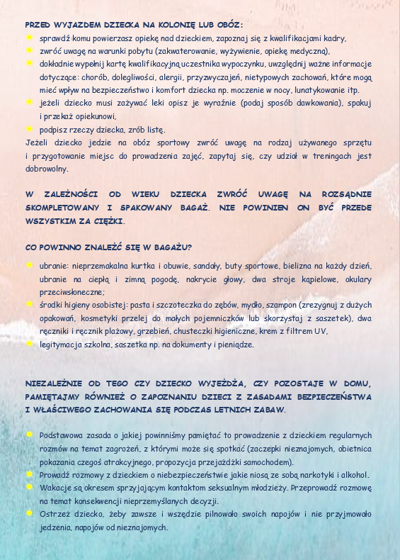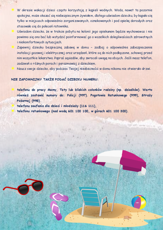 Poniżej fotorelacja oraz porady dla rodziców, jak zorganizować bezpieczne wakacje dla swoich pociech.