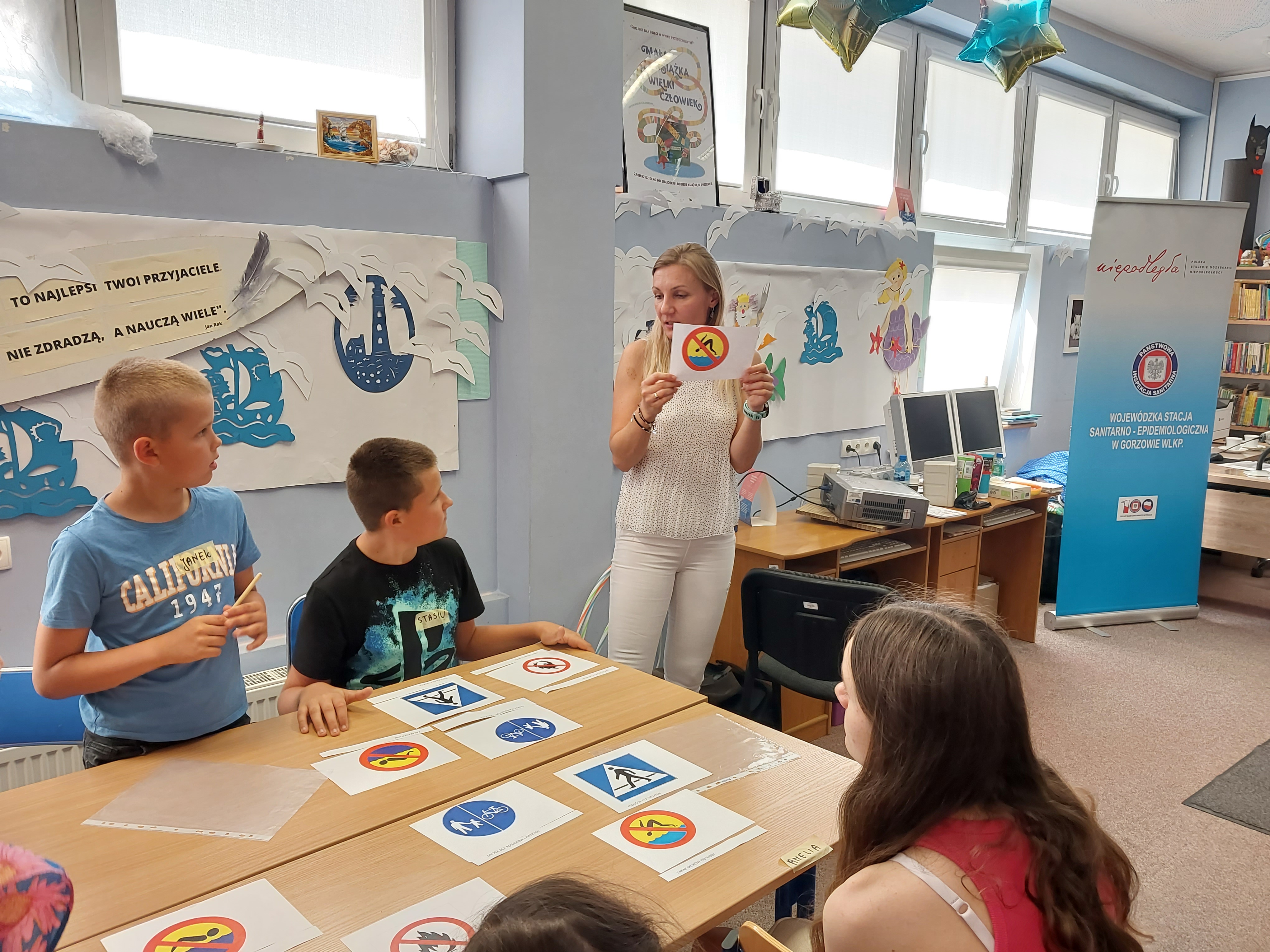 W ramach akcji #latozsanepidem rozmawialiśmy z uczestnikami półkolonii o zasadach bezpiecznego wypoczynku nad wodą. Wszystko po to, aby wakacje spędzić zdrowo, szczęśliwie i bezpiecznie.