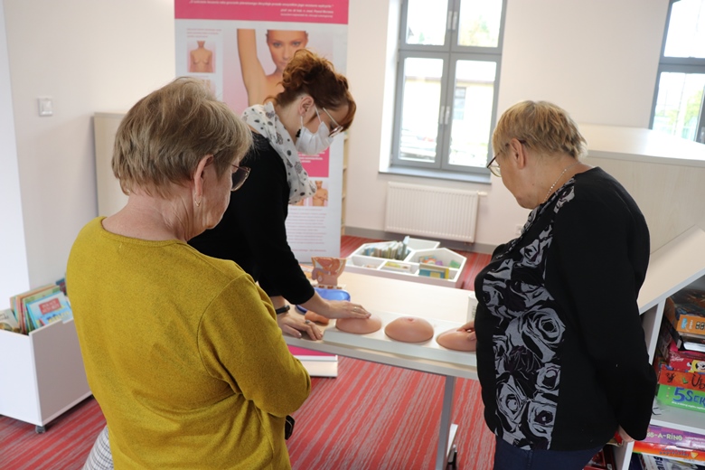 Przedstawiciele Lubuskiego Państwowego Wojewódzkiego Inspektora Sanitarnego w Gorzowie Wlkp. wspierając działania podejmowane na rzecz walki z rakiem piersi, przeprowadzili tematyczne zajęcia edukacyjne dla czytelników Biblioteki w Deszcznie oraz zaproszonych gości. W trakcie zajęć omówiono przyczyny, objawy oraz metody profilaktyki raka piersi. Panie chętnie wzięły udział również w nauce samobadania piersi na fantomach.