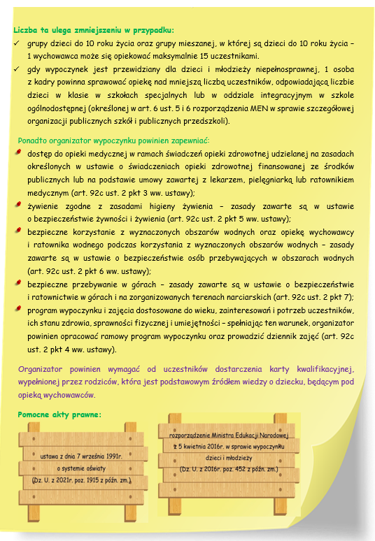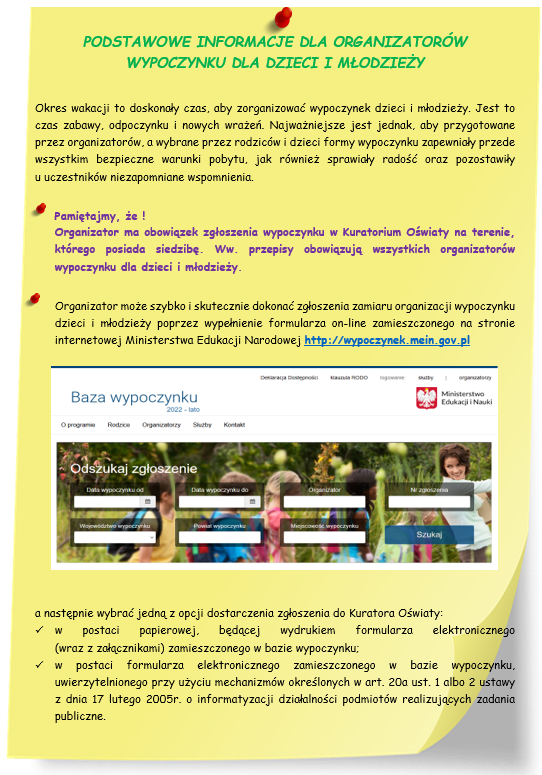 Podstawowe informacje dla organizatorów wypoczynku dla dzieci i młodzieży