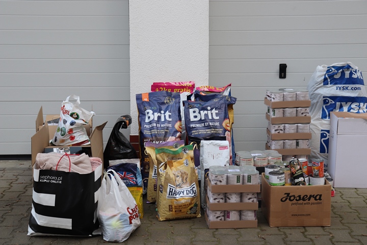 W ciągu kilku dni zebraliśmy karmę, pledy i koce oraz inne rzeczy przydatne w opiece nad bezdomnymi zwierzętami.