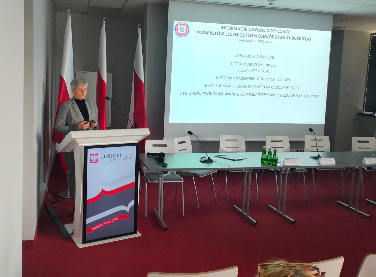 W Lubuskim Urzędzie Wojewódzkim odbyło się spotkanie dla dyrektorów i zespołów kontroli zakażeń szpitalnych podmiotów leczniczych z terenu województwa lubuskiego. Lubuski Państwowy Wojewódzki Inspektor Sanitarny w Gorzowie Wlkp. - Dorota Konaszczuk, przedstawił sytuację dotyczącą czynników alarmowych i ognisk epidemicznych rejestrowanych w szpitalach województwa w latach 2019-2022.