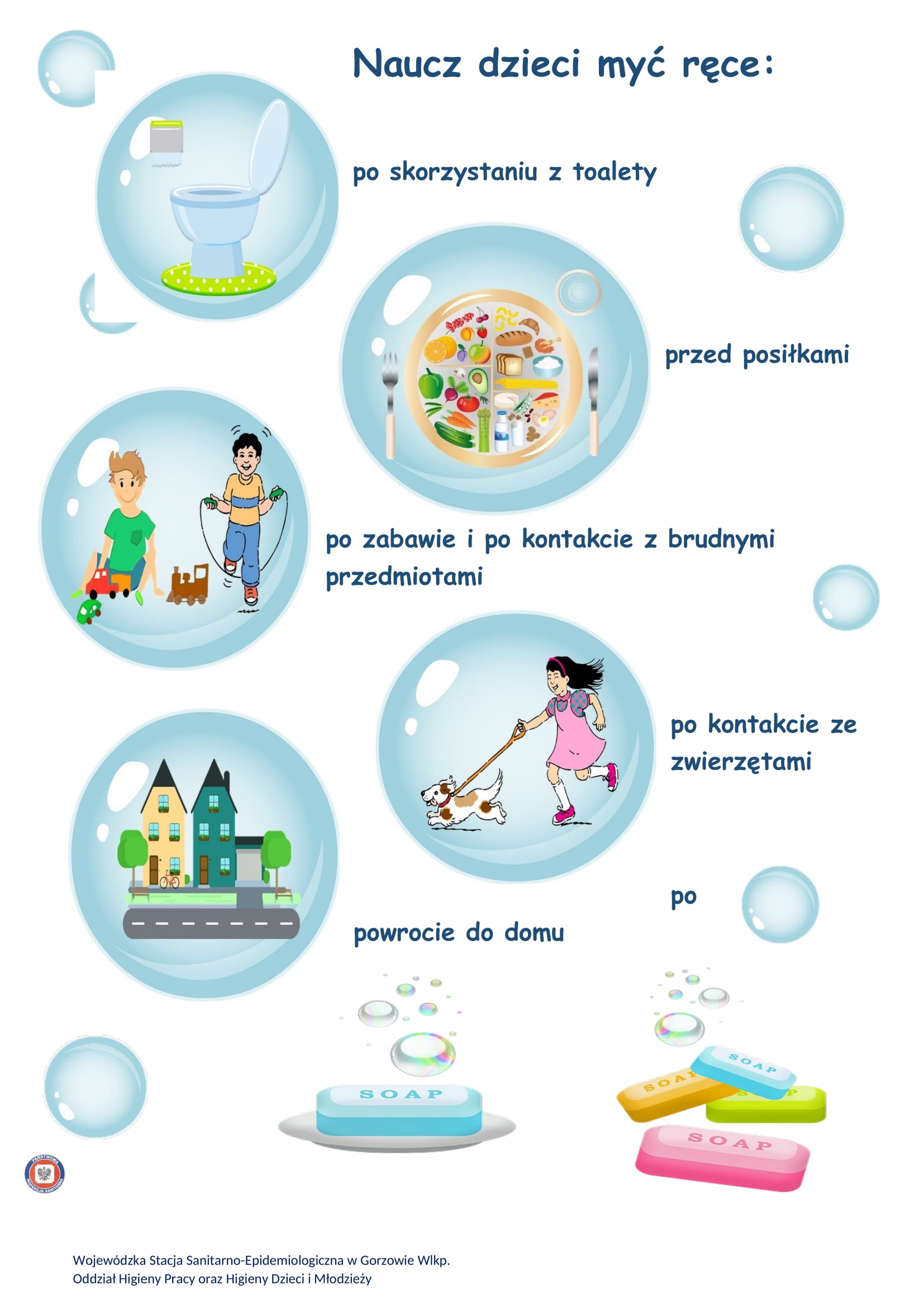 Propagowanie zdrowego stylu życia oraz dobrych praktyk higienicznych jest jednym z zadań inspekcji sanitarnej, dlatego też zachęcamy wszystkich – a zwłaszcza dzieci – do regularnego mycia rąk jako kluczowego elementu profilaktyki. Jednocześnie zachęcamy do włączenia się w działania edukacyjne, by propagować regularne i prawidłowe wykonywanie czynności higienicznych.