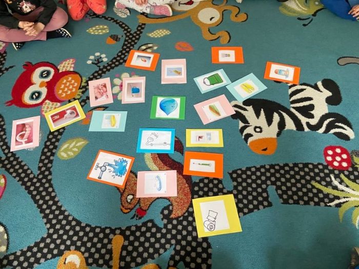 W trakcie zajęć dzieci wyjaśniały, dlaczego należy dbać o higienę osobistą. Wybierały z rozsypanki obrazkowej przedmioty służące zachowaniu czystości i opisywały do czego są przeznaczone. Wymieniały sytuacje w jakich zawsze należy myć ręce. Przy wykorzystaniu wierszyka „Myje ręce” nauczyły się prawidłowo wykonywać tę czynność. Znakomicie rozwiązywały tematyczne zagadki i quizy. Uśmiechnięte buzie przedszkolaków świadczą o tym, że zajęcia były dla nich atrakcyjne. Otrzymaliśmy już zaproszenie na następne spotkanie. A więc do zobaczenia…