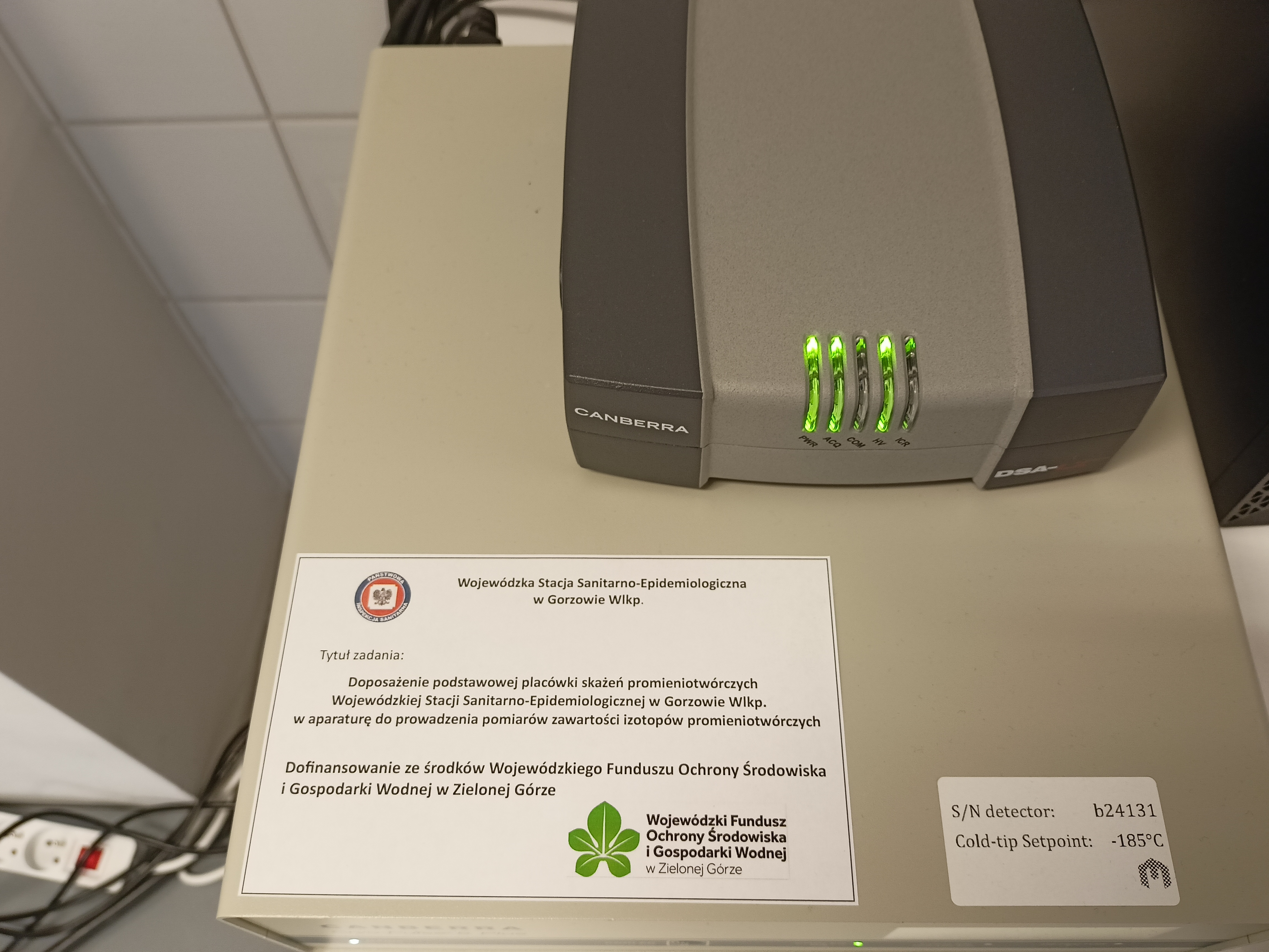 W ramach zadania Wojewódzka Stacja Sanitarno-Epidemiologiczna w Gorzowie Wlkp. zakupiła spektrometr gamma z detektorem półprzewodnikowym.