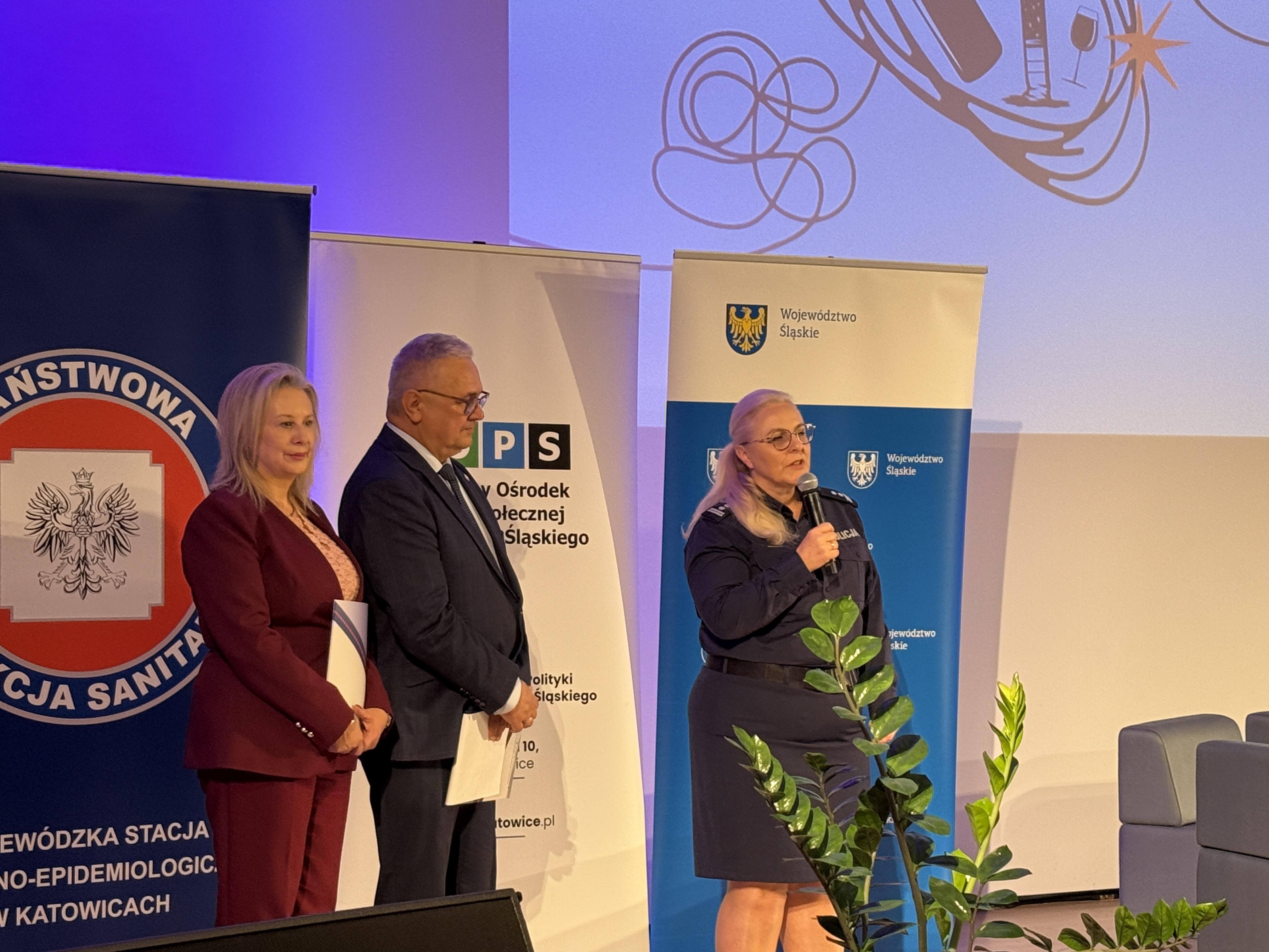 Organizatorzy Konferencji: Wojewódzka Stacja Sanitarno-Epidemiologiczna w Katowicach, Urząd Marszałkowski Województwa Śląskiego, Regionalny Ośrodek Polityki Społecznej w Katowicach oraz Komenda Wojewódzka Policji w Katowicach.
