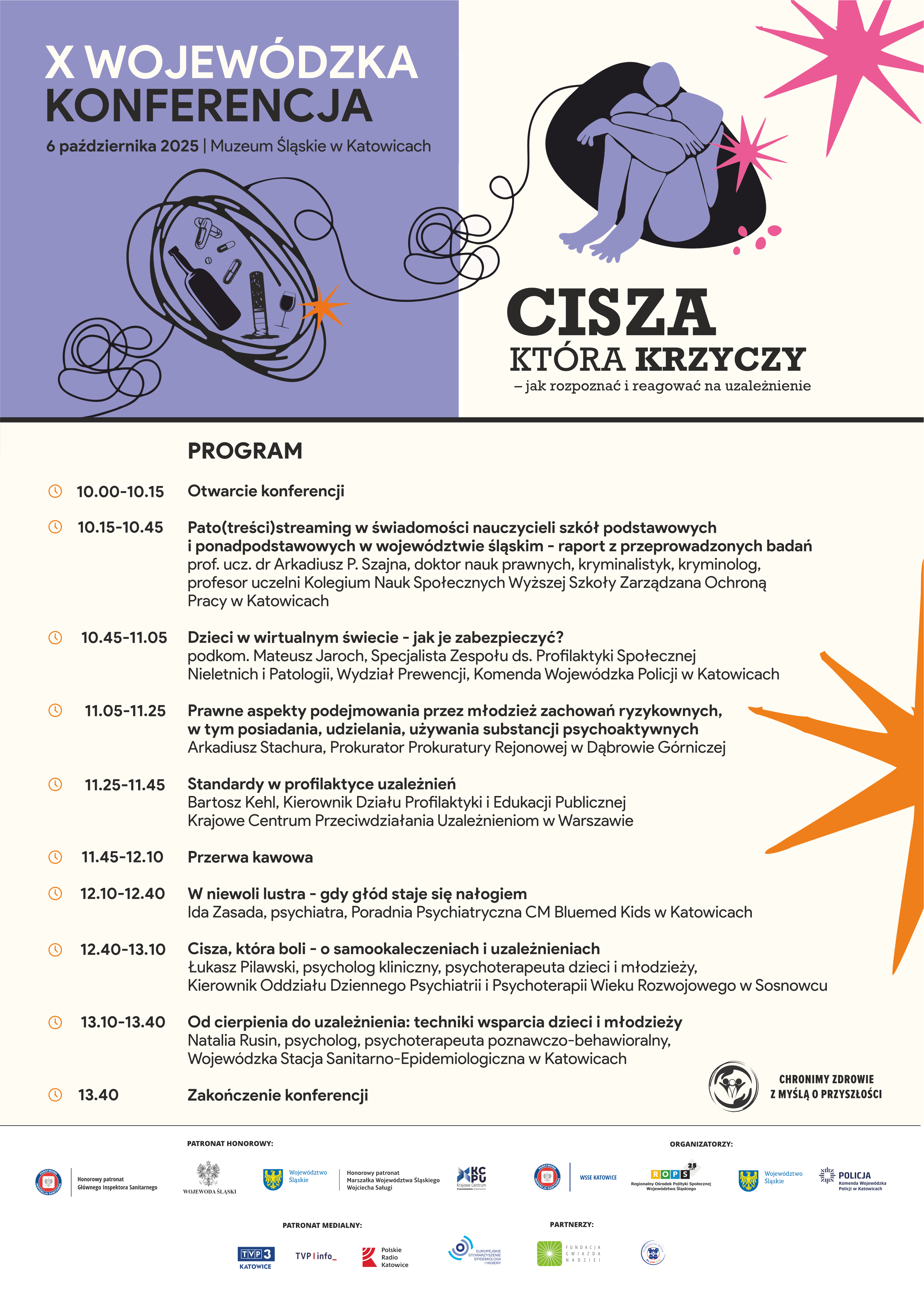 6 października 2025 r. w Muzeum Śląskim w Katowicach odbyła się X Wojewódzka Konferencja pt. „Cisza, która krzyczy – jak rozpoznać i reagować na uzależnienie”.