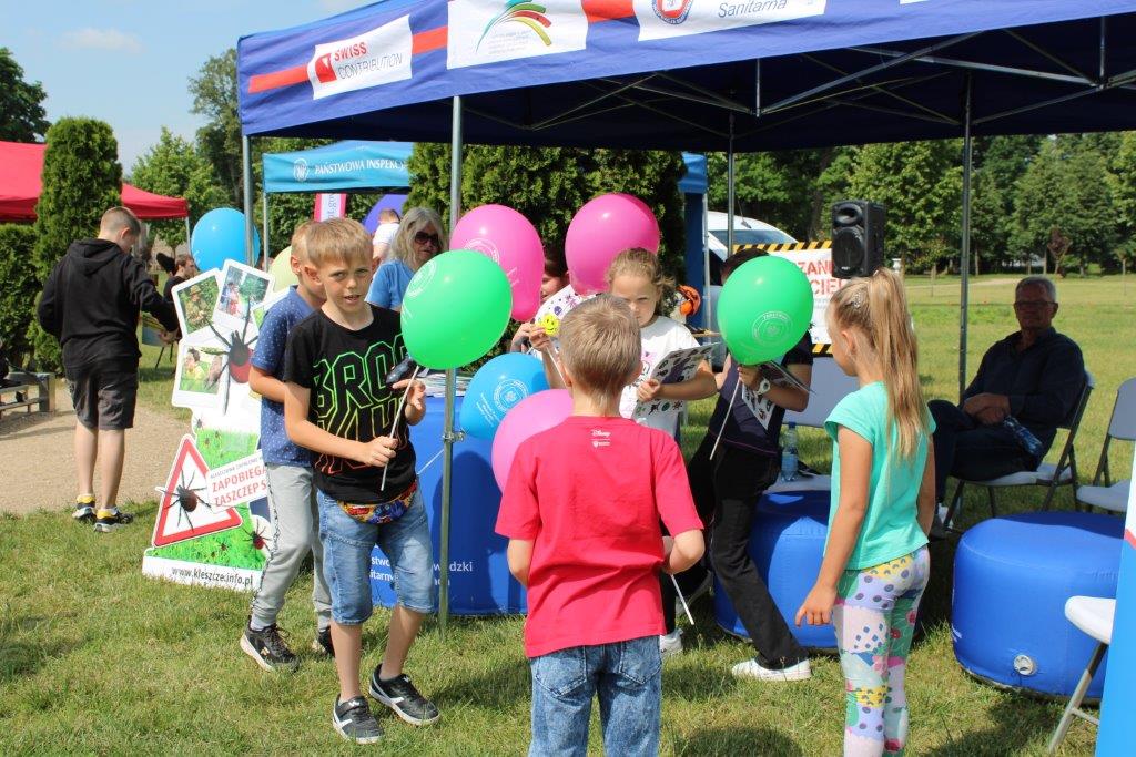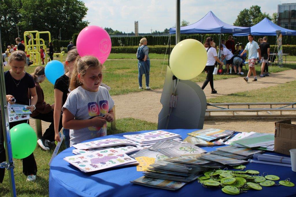 Dzieci otrzymały kolorowanki edukacyjne „Myję ręce, bo wiem więcej” i „Dowiedz się więcej o kleszczach”, broszury „Zdrowe i bezpieczne wakacje”, odblaski – opaski na rękę i „uśmiechnięte buźki”, zakładki do książki dot. profilaktyki czerniaka oraz ulotki dot. profilaktyki chorób odkleszcowych. Najmłodsi uczestnicy otrzymali również balony na patyku.