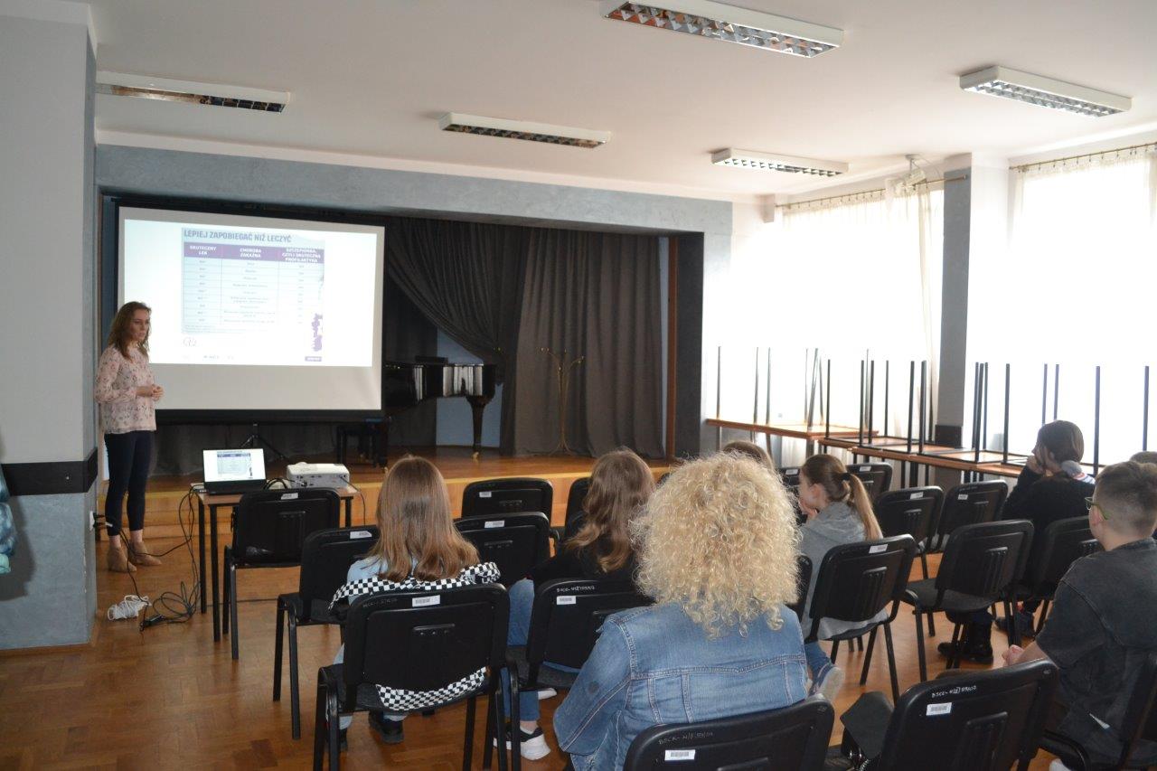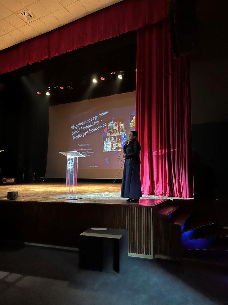 W ramach konferencji Ewa Ziemkiewicz - kierownik Oddziału Promocji Zdrowia i Oświaty Zdrowotnej WSSE Kielce wygłosiła wykład ph: „Współczesne zagrożenia dzieci i młodzieży – środki psychoaktywne” skierowany do uczniów klas starszych szkół podstawowych i ponadpodstawowych.