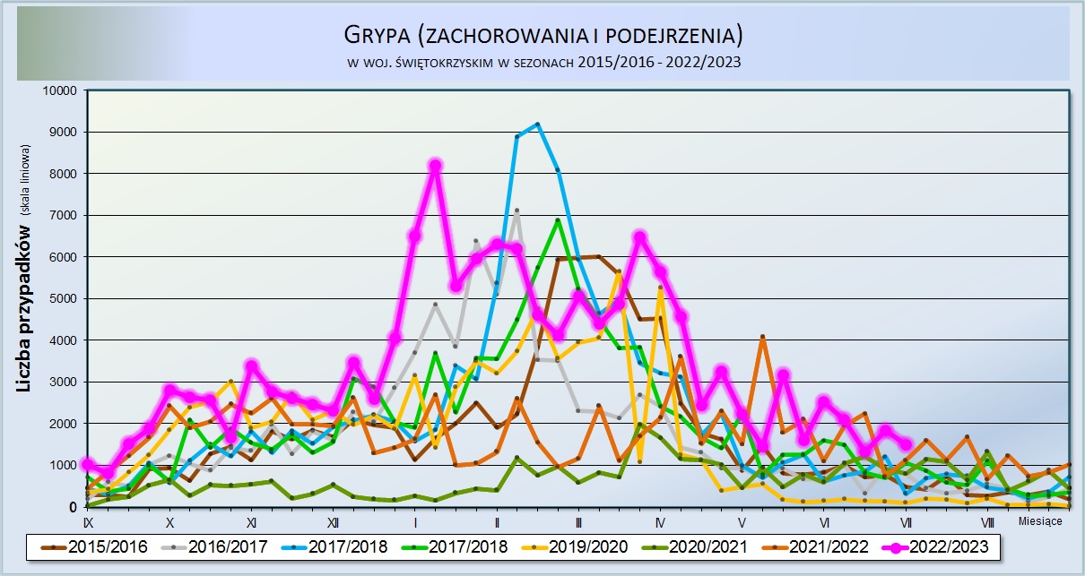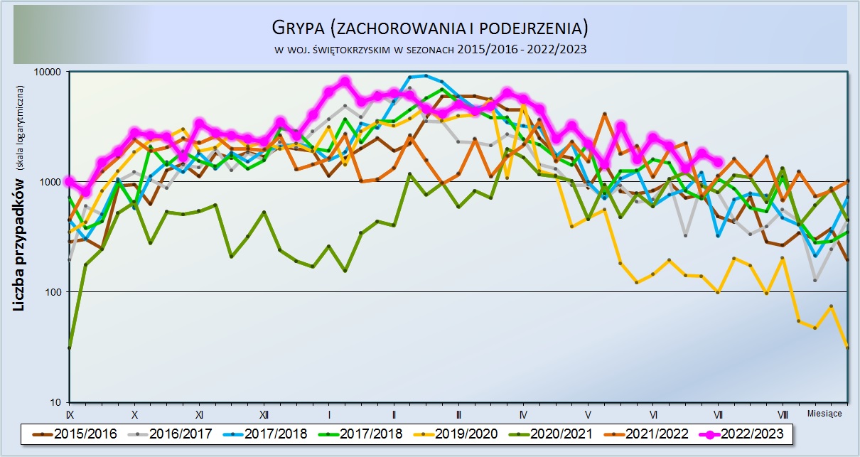 Grypa (zachorowania i podejrzenia) w woj. świętokrzyskim