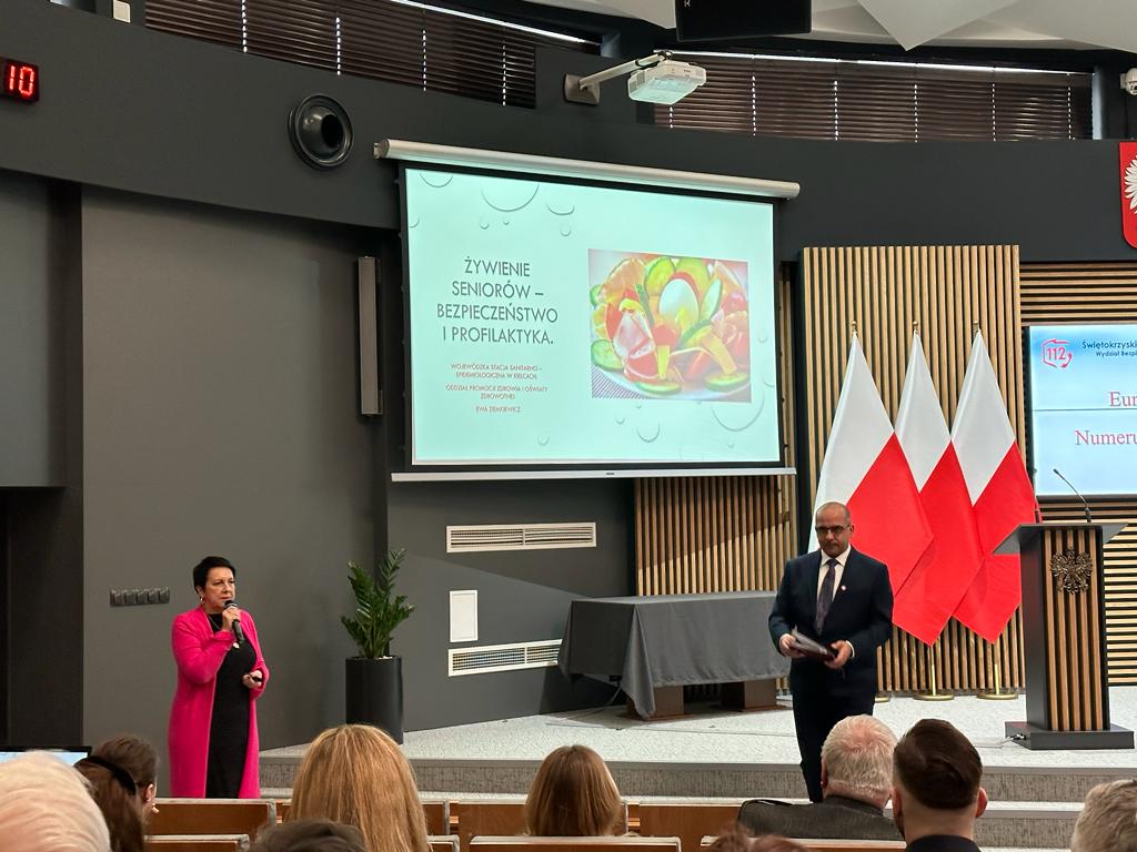 W ramach tego wydarzenia Ewa Ziemkiewicz – kierownik Oddziału Promocji Zdrowia i Oświaty Zdrowotnej Wojewódzkiej Stacji Sanitarno-Epidemiologicznej w Kielcach wygłosiła wykład pt: „Żywienie seniorów – bezpieczeństwo i profilaktyka”.