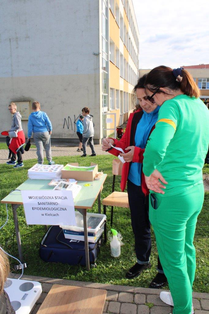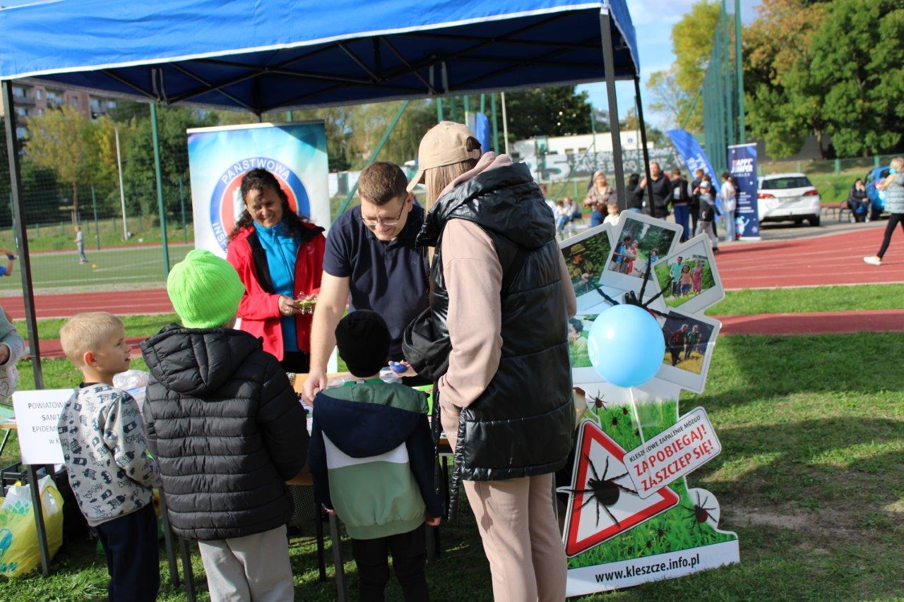 24.09.2025 przedstawiciele Wojewódzkiej Stacji Sanitarno-Epidemiologicznej i Powiatowej Stacji Sanitarno-Epidemiologicznej w Kielcach uczestniczyli w Słonecznym Pikniku Rodzinnym w Szkole Podstawowej Nr 39 w Kielcach. Na zorganizowanym stoisku profilaktycznym-edukacyjnym promowano zdrowy styl życia z uwzględnieniem zdrowego odżywiania, profilaktyki chorób odkleszczowych, profilaktyki uzależnień oraz bezpiecznego grzybobrania. W ramach tego wydarzenia wykonywano pomiary stężenia tlenku węgla w wydychanym powietrzu oraz analizę składu ciała. Dzieci otrzymały materiały edukacyjne: kleszczowanki, kolorowanki: "Myję ręce, bo wiem więcej", ulotki tematyczne oraz odblaski.