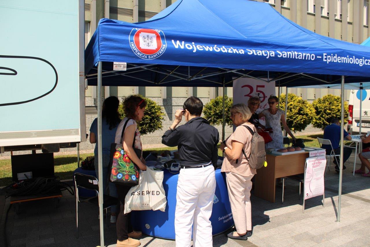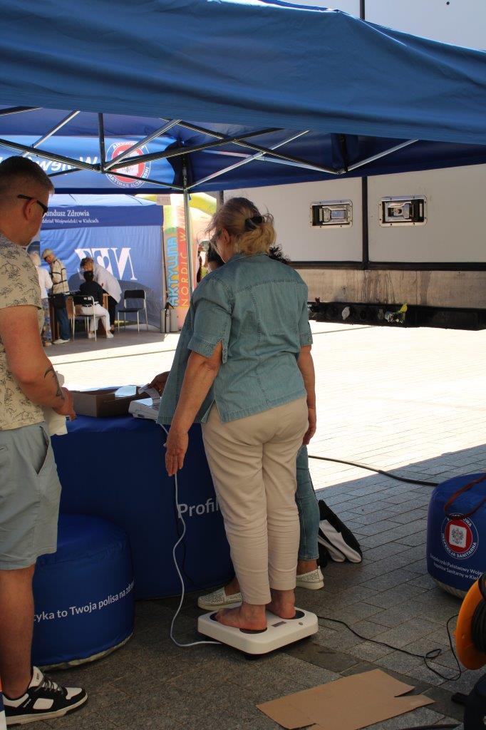 28.03.2024 r. Oddział Promocji Zdrowia i Oświaty Zdrowotnej Wojewódzkiej Stacji Sanitarno-Epidemiologicznej w Kielcach prezentował pod Urzędem Wojewódzkim stoisko informacyjno-edukacyjne z materiałami promującymi zdrowy styl życia. Odwiedzającym stoisko oferowano możliwość badania tlenku węgla w wydychanym powietrzu u osób palących papierosy tradycyjne, pomiary ciśnienia tętniczego krwi, analizę składu ciała za pomocą wagi TANITA.