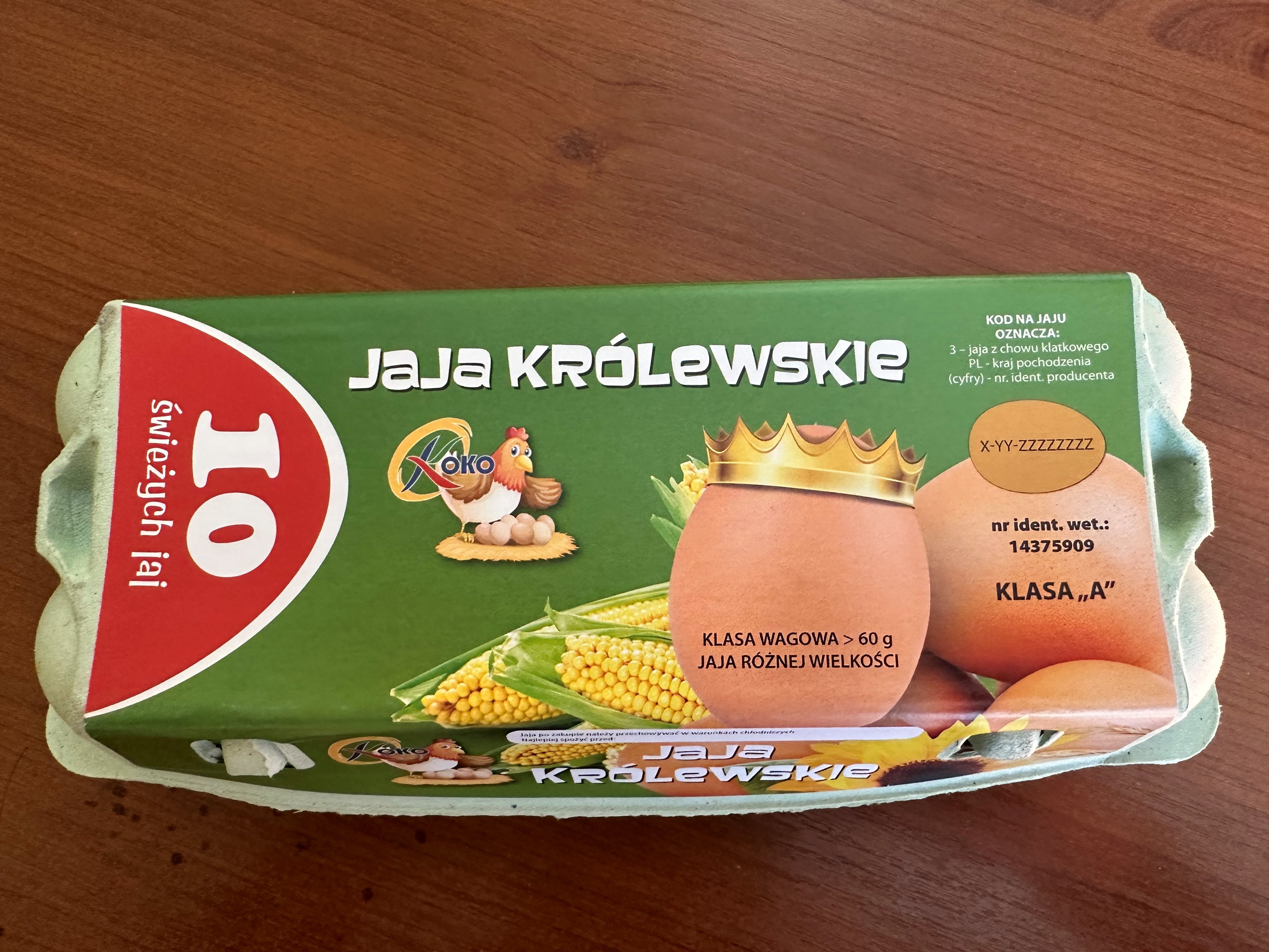 Produkt – Jaja Królewskie klasa A, klasa wagowa>60 g; jaja różnej wielkości