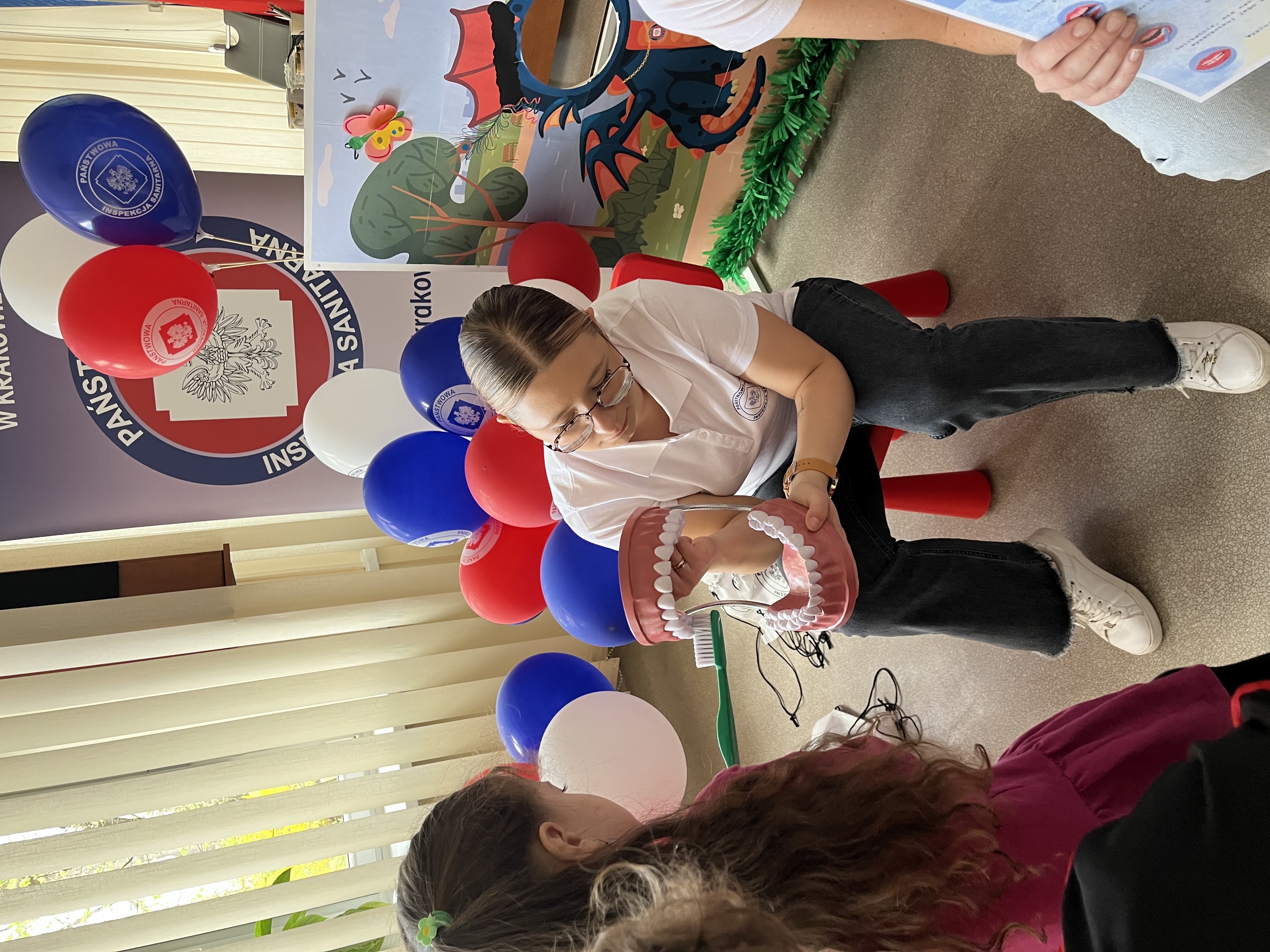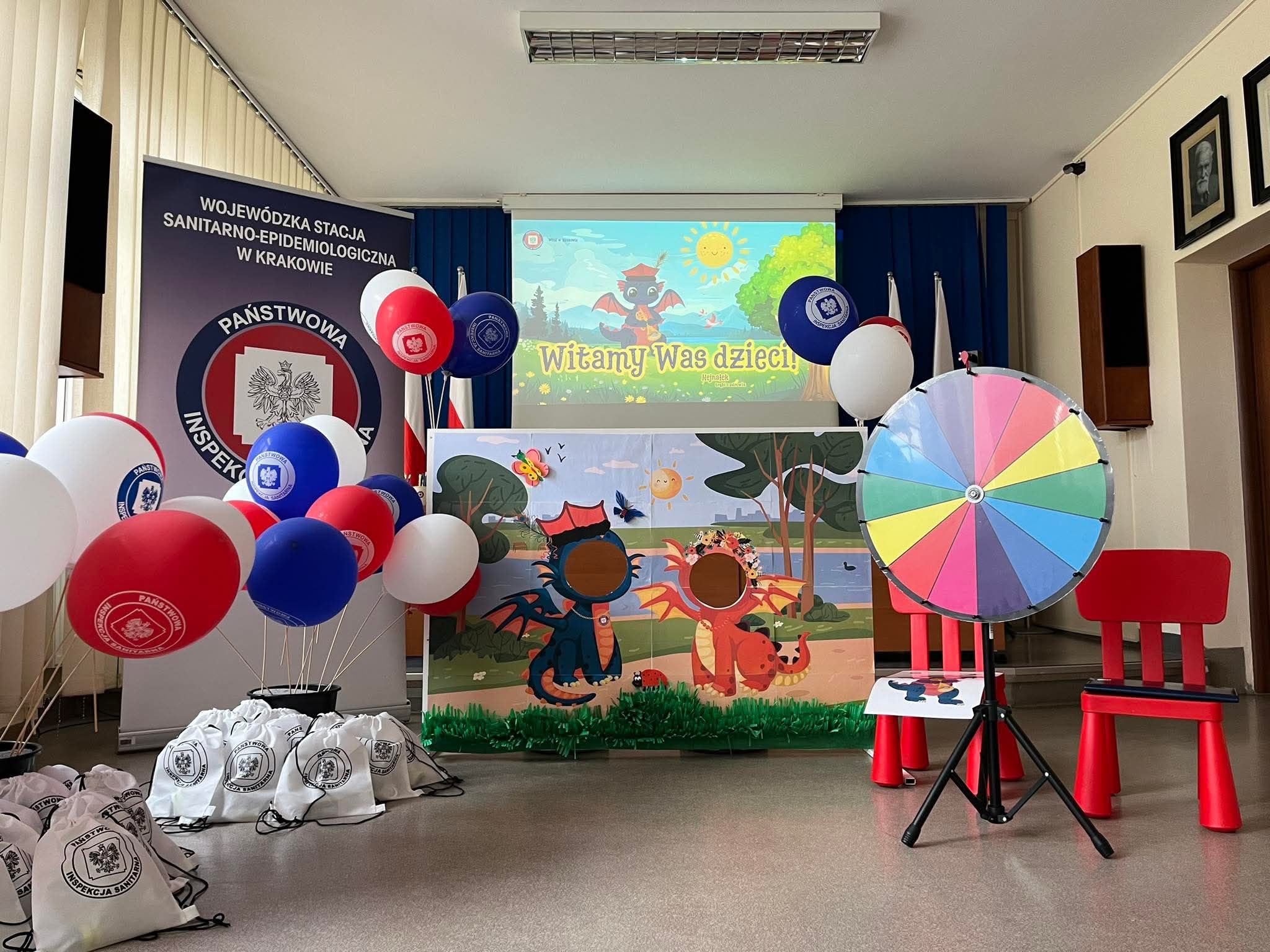 Naszych gości powitali Małopolski Państwowy Wojewódzki Inspektor Sanitarny, Andrzej Hawranek oraz zastępca Małopolskiego Państwowego Wojewódzkiego Inspektora Sanitarnego, Maciej Klima. Podczas wydarzenia nasi najmłodsi uczestnicy poznali mieszkającego w Wojewódzkiej Stacji smoka Hejnałka i wzięli udział w zajęciach edukacyjnych o zdrowym stylu życia i higienie. Dzieci szczotkowały zęby i uczyły się jak dokładnie umyć rączki. W nagrodę za zaangażowanie otrzymały pamiątkowe dyplomy i upominki. Dzieci z chęcią pozowały również na specjalnie przygotowanej ściance do zdjęć przedstawiającej nasze dwa urocze, inspekcyjne smoczki – Hejnałka i Sukienniczkę.