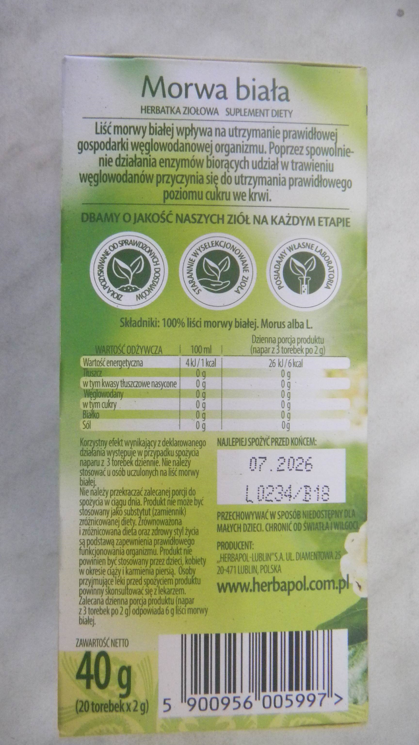 Produkt: Morwa biała Herbata ziołowa, Zielnik Polski, 40 g (20 torebek x 2 g)