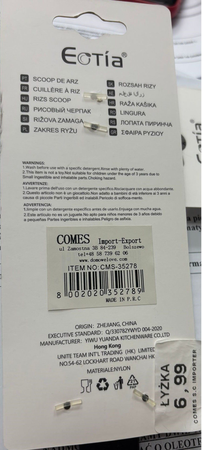 Ostrzeżenie publiczne dotyczące wyrobu do kontaktu z żywnością: Migracja pierwszorzędowych amin aromatycznych z łyżki z nylonu