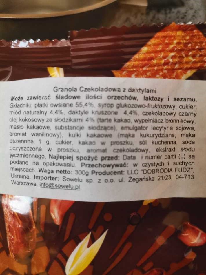Główny Inspektorat Sanitarny został poinformowany o skardze konsumenta na obecność orzeszków ziemnych w granoli czekoladowej z daktylami, pomimo braku informacji o tym składniku na etykiecie produktu w języku polskim. Etykieta została błędnie przetłumaczona i nie zamieszczono na niej informacji o obecności alergenu – orzeszków ziemnych.