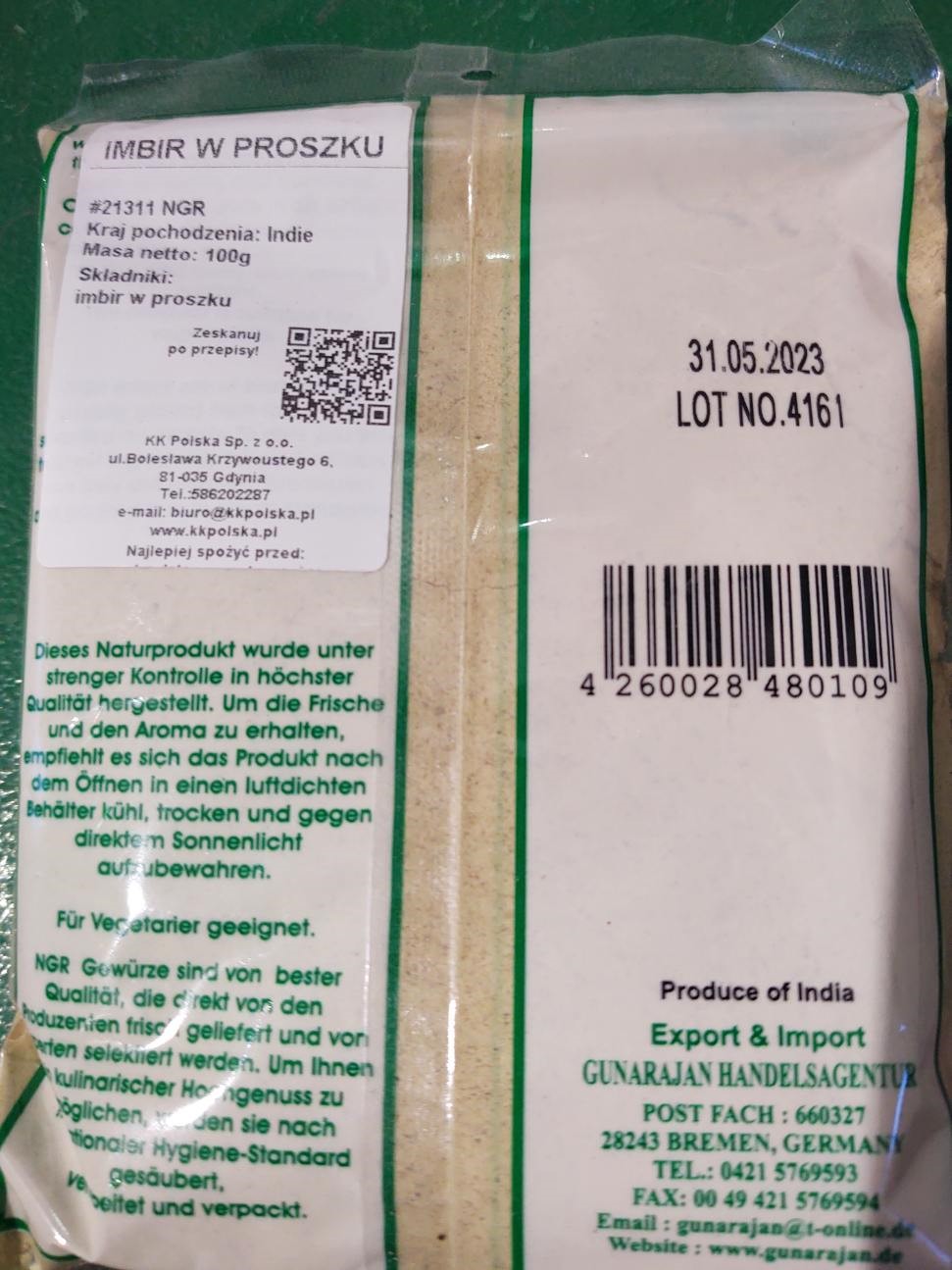 Ostrzeżenie publiczne dotyczące żywności: Wycofanie jednej partii imbiru w proszku ze względu na stwierdzenie niedeklarowanej obecności substancji alergennej – dwutlenku siarki