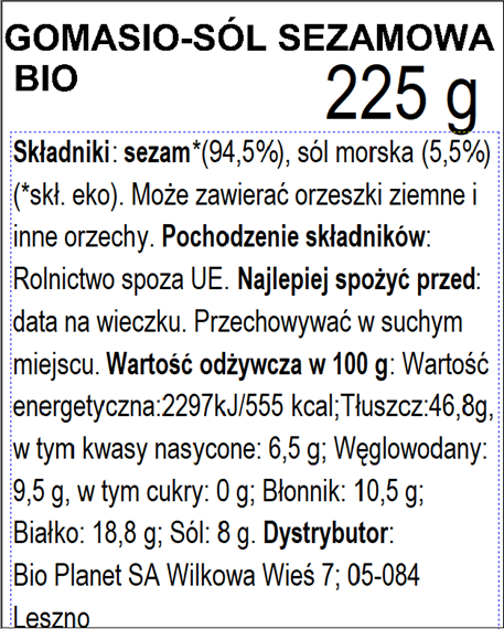 Dystrybutor w Polsce: Bio Planet S.A. Wilkowa Wieś 7, 05-084 Leszno