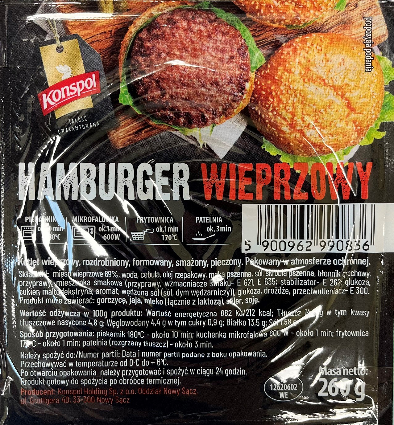 Nazwa produktu: Hamburger wieprzowy, 260g